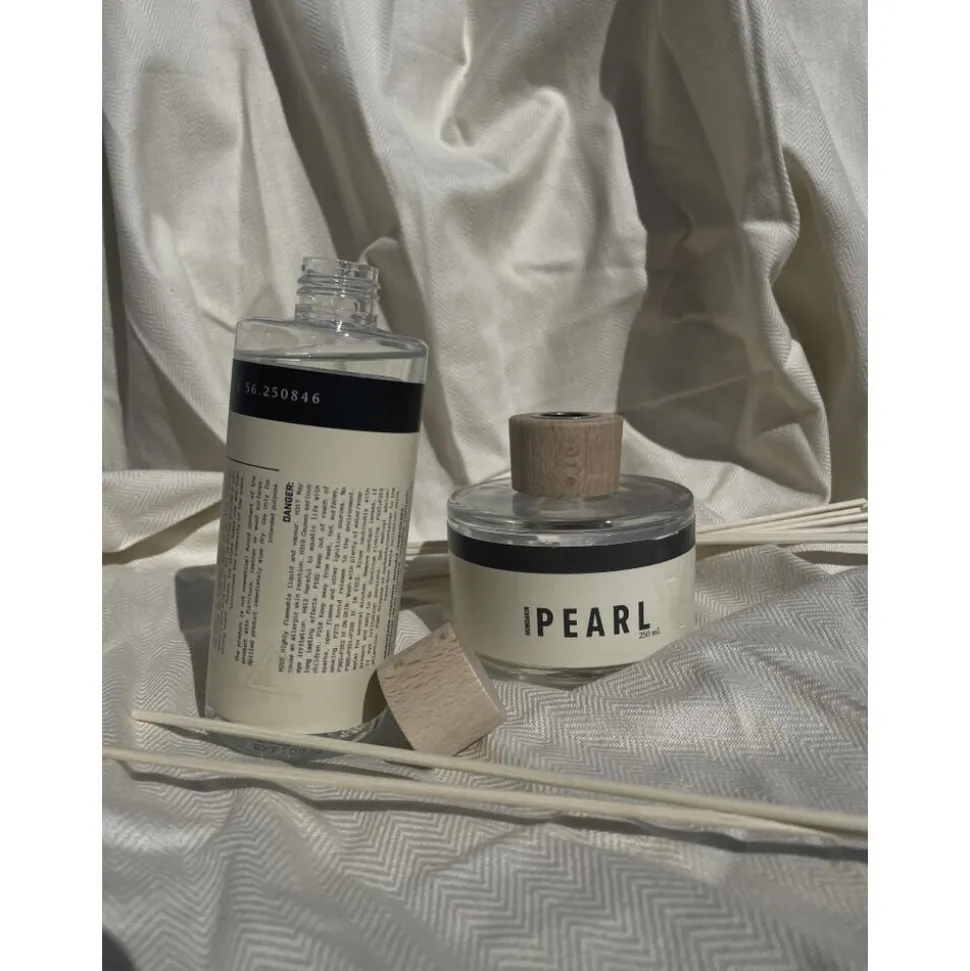 HUMDAKIN REFILL PEARL 250 ml. Humdakin scent refill for Pearl fragrance sticks for the sustainable mindset. With this product you can prolong the life of your original Pearl fragrance sticks with the glass bottle by refilling the oil and sticks. In this product you get a full refill of 250 ml. oil in a reusable PET plastic bottle and 10 new sticks. A sustainable solution for our planet. The Pearl scent combines the fresh yet sweet scent of apple and sandalwood. DIRECTIONS FOR USE- Remove the lid of your original fragrance sticks and poor the new oil in. Replace the old sticks with the new ones. We recommend placing three sticks in the oil, however, you can place more or less depending on how strong you want the scent to be and where in the room the bottle is placed. The bottle is recyclable PET plastic with a wooden lid. Ingredients- Tetramethyl acetyloctahydrophthalenes, ethyl linalool