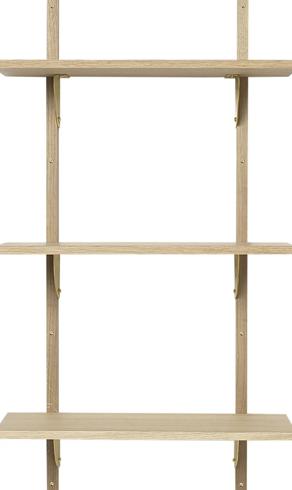 Sector en nyfortolkning af 50er og 60er reoler er karakteriseret ved sin robuste enkelhed og klassiske kombination af træ og messing den fås med naturlig egefinér eller med sortbejdsede askefinér hylder og med polerede eller sværtede messingbeslag. Den fås i to størrelser, og hylden fastgøres til væggen med de massive trælister med synlige skruer. Brug den til at udstille dine yndlingsting i stuen eller til opbevaring af krukker i et køkken.