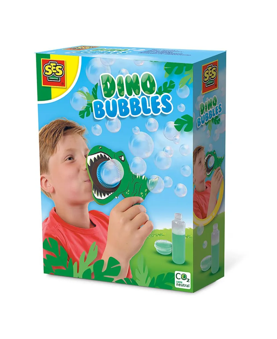 Indhold: Dinosaur bobleblæser af skum, blæsering, 200 ml boblesæbe, skål.