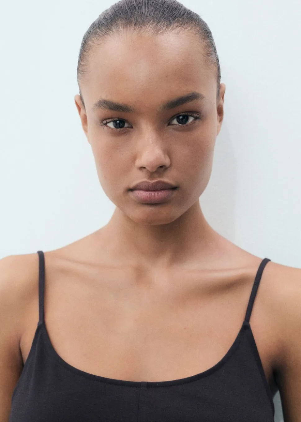 Langt Design, lige Design, rund hals, uden ærmer, tynde stropper, ingen fastgørelse.