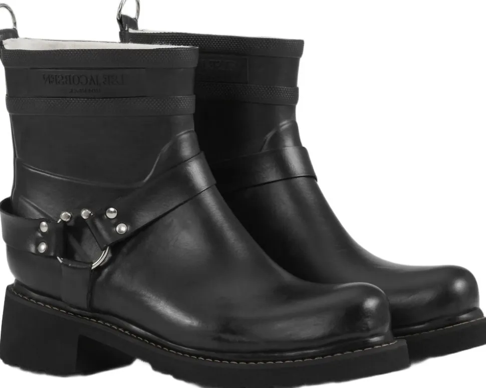 Dristige og elegante gummistøvler i ankellængde bikermodel. Indeholder en