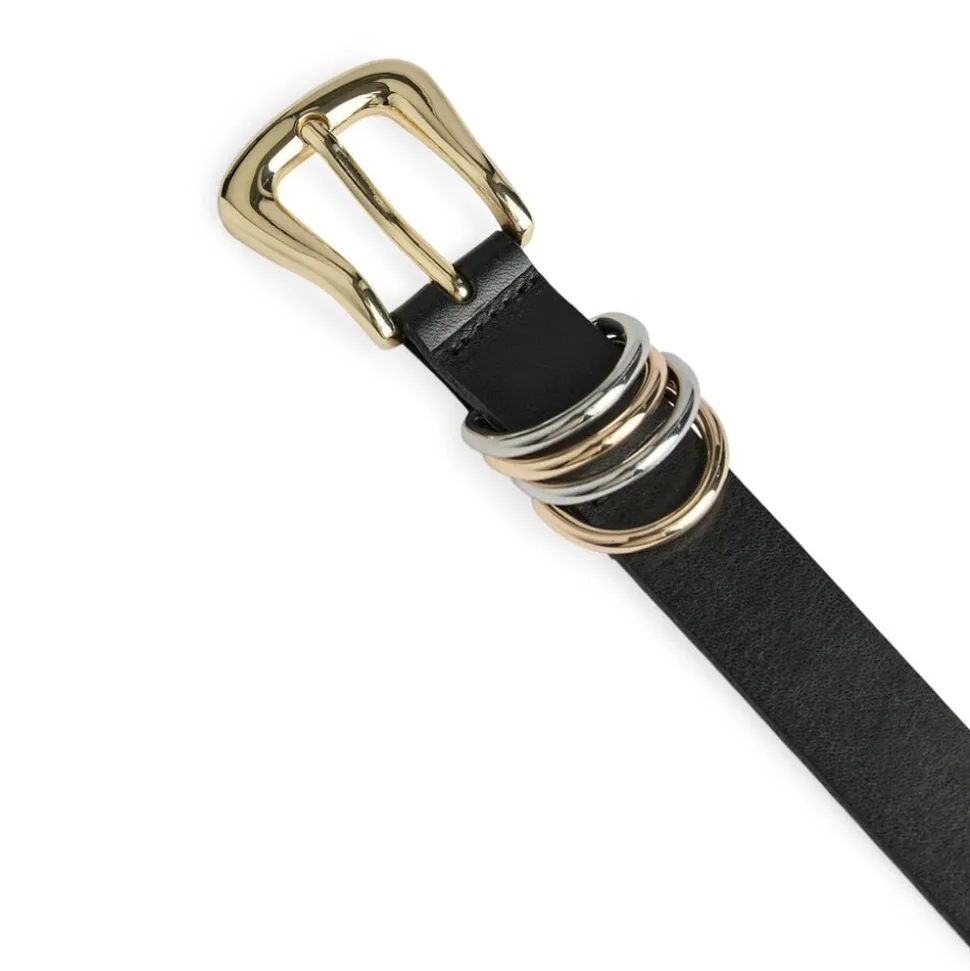 Sif Belt fra Markberg er et stilfuldt bælte fremstillet af 100% kalveskind. Metalspændet og ringene omkring tilføjer et moderne touch, mens bæltets justerbare design gør det muligt at finde den perfekte pasform. Med en bredde på 2,5 cm er det alsidigt og kan nemt bruges til både hverdagslook og mere formelle outfits. Bæltet er nikkelfri.