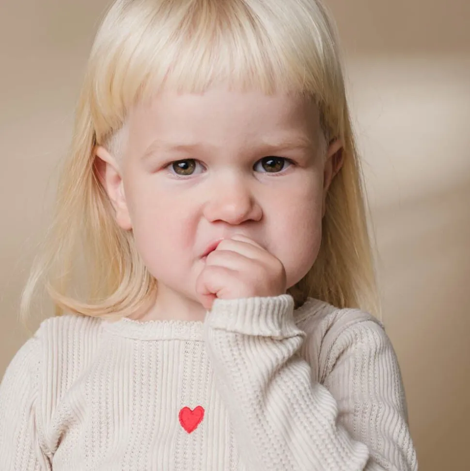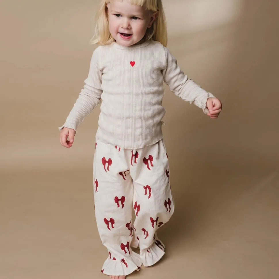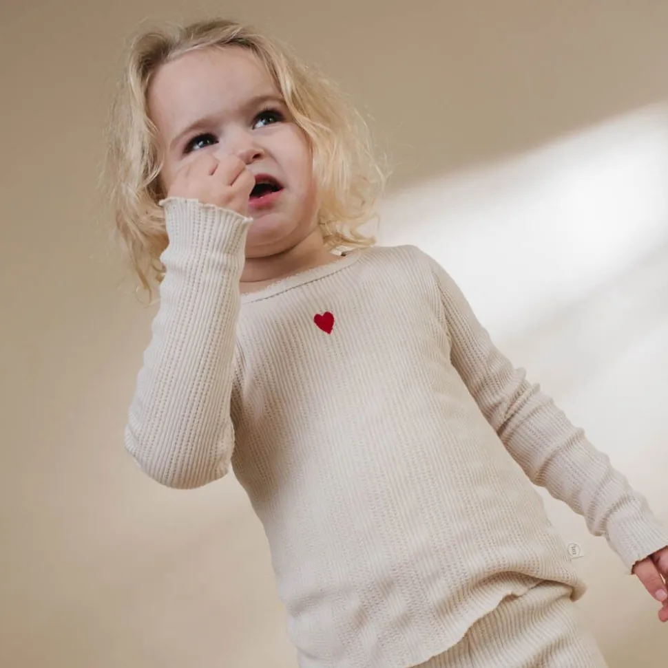 Fin langærmet t-shirt i børstet pointelle med hjerte foran. Lavet af økologisk bomuld. T-shirten kan fuldendes i et nuttet sæt med Sylvia leggins