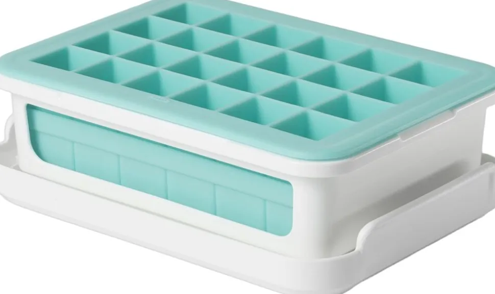 OXOs Isterningebakke m/Låg gør det nemt at lave ensformige isterninger til dine drinks. Bakken laver 48 små isterninger på 2,25 x 2,25 cm i 2 lag, og den fleksible silikone gør det nemt at få de frosne isterninger ud af bakken når de skal bruges. Bakken sidder i en fast plastik ramme, som giver bakken støtte og stabilitet mens bakken fyldes, flyttes og opbevares. Låget holder lugt ude og gør det samtidig muligt at stable flere bakker ovenpå hinanden. Tåler opvaskemaskine.