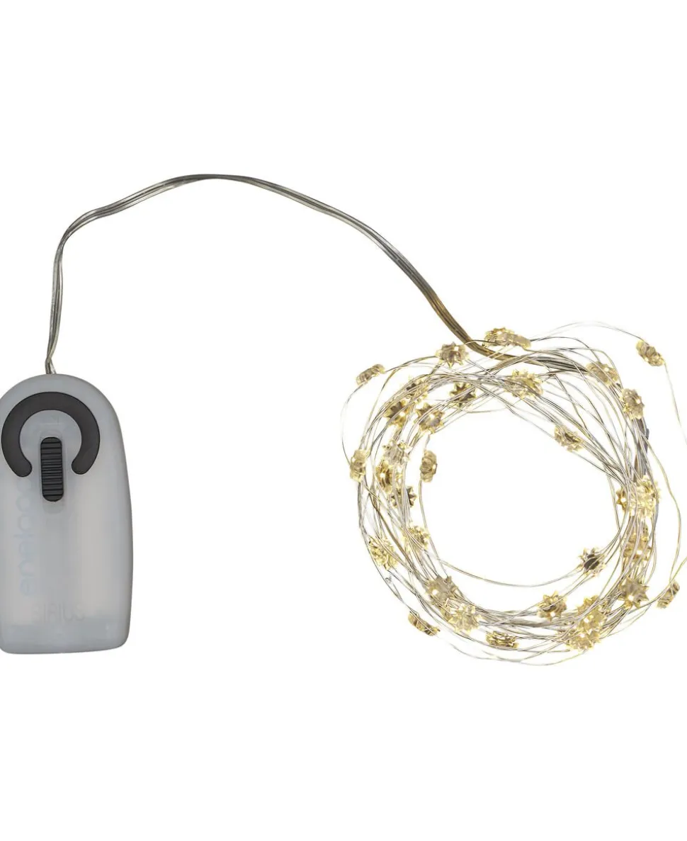 Sirius Lyskæden Silke har 40 meget små fine (0,5 cm) LED lys. På kæden er der påsat 40 små (1cm) klare blomster. Kæden er lavet med en fin sølvtråd der er snoet rundt om den transprarente ledning. Meget dekorativ kæde. Kæden er 3,9 meter lang, og har et varmt naturligt lys. Dekorationen er batteridrevet og har en indbygget timerfunktion, der slukker lyset automatisk efter 6 timer, hvis du ikke selv slukker dem. Efter 18 timer tænder lyset igen, og sådan vil det fortsætte, hvis du ikke bruger sluk knappen. Batterier medfølger ikke. Der skal isættes 2 AA Batterier. Kan kun benyttes indendørs.