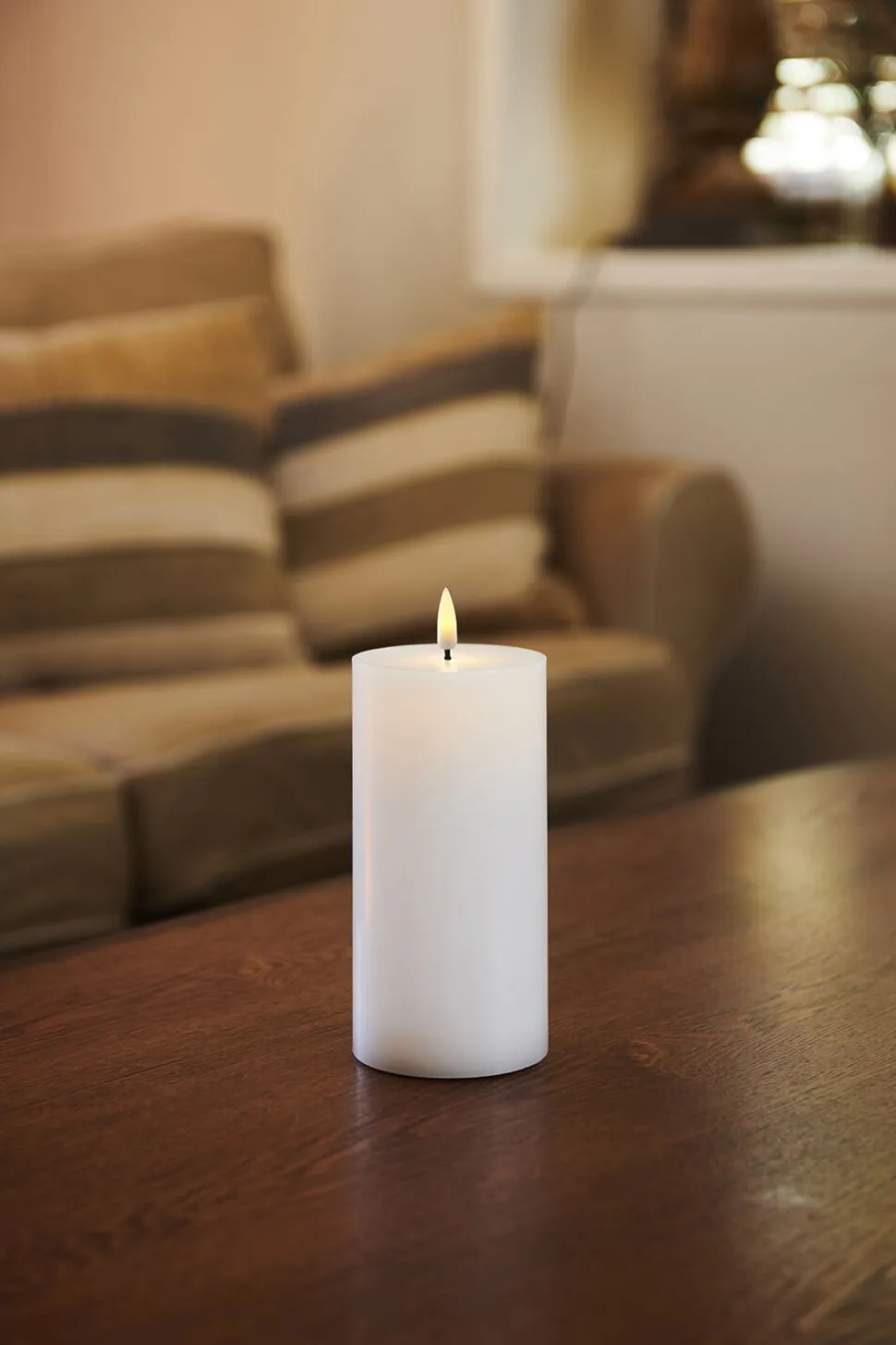 Genopladeligt lys i ægte stearin hvor hele vægen og LED flammen er synlig. Sille er et bæredygtige og miljøvenlige alternativer til traditionelle stearinlys.