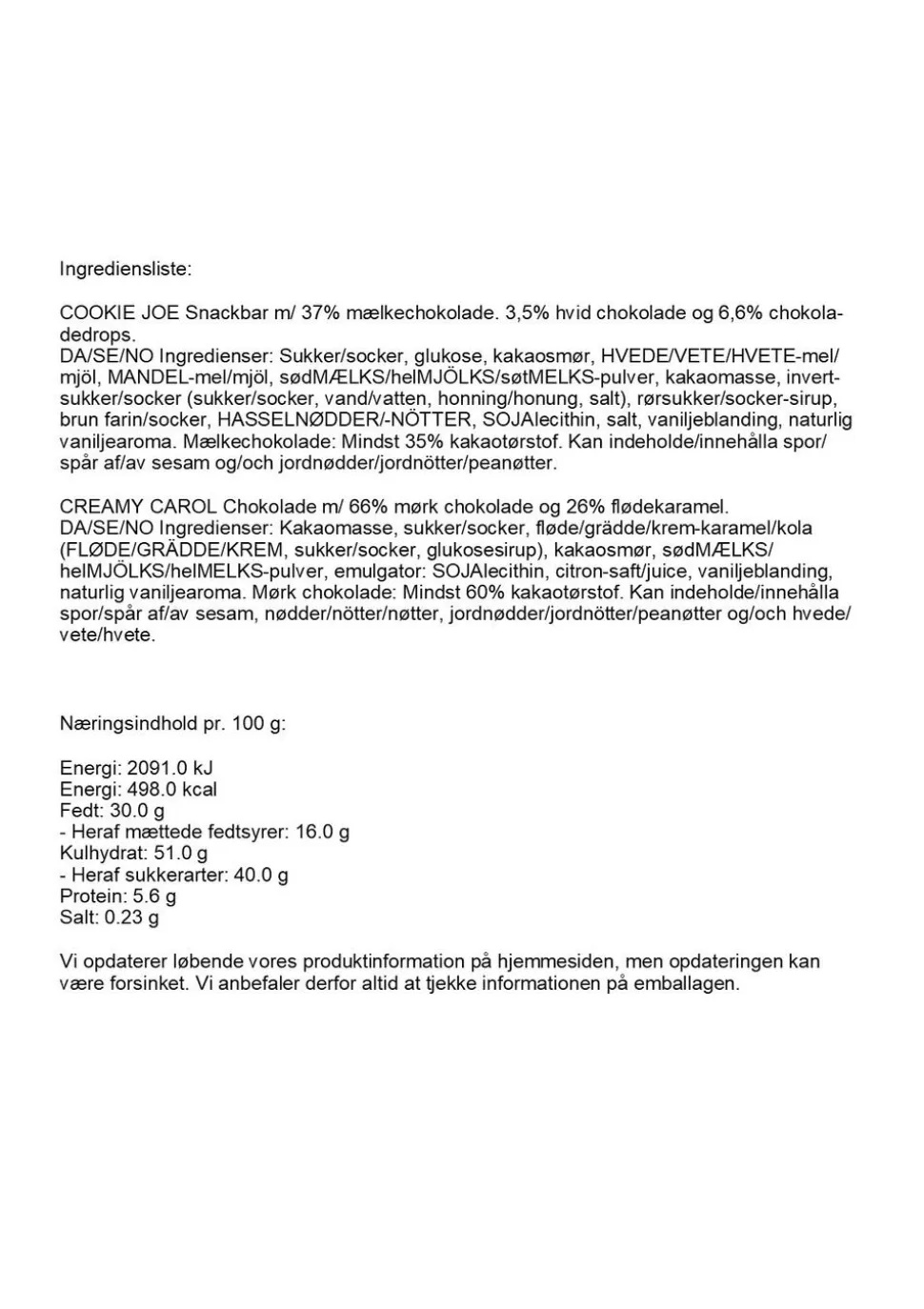 Oplev den himmelske harmoni mellem vores prisvindende kombinationer af naturlige ingredienser og premium chokolade. I denne magiske juleæske kan du glæde dig til en smagsoplevelse med Simply® Cookie Joe og Simply® Creamy Carol. Vi tør godt love, at denne gave skaber både fred og harmoni i sjælen hos den heldige modtager. I alt 18 lækre chokoladebites. * Simply® Creamy Carol