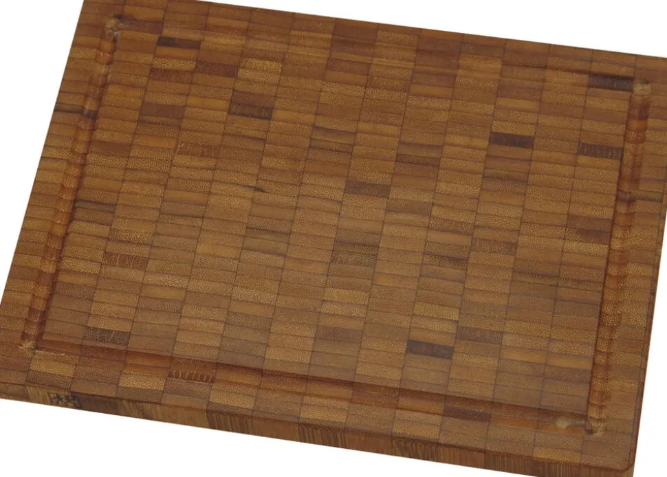 Et godt skæreunderlag til køkkenet skal være stabilt og let at rengøre, samtidig må det ikke bevirke at knivbladene slides for hurtigt. ZWILLING skærebrættet i bambus er optimalt hvad dette angår, og kan benyttes som underlag når der skal hakkes eller skæres alle typer madvarer. Brættet har saftrille på den ene side, men kan benyttes på begge. Bør kun vaskes af i håden i varmt vand, med et mildt opvaskemiddel og efterfølgende tørres stående. Må ikke udøttes for ekstreme temperaturer eller vedvarende fugt. Den naturlige farve på skærrebrættet bevares bedst ved regelmæssigt at behandle det med en neutral madolie.