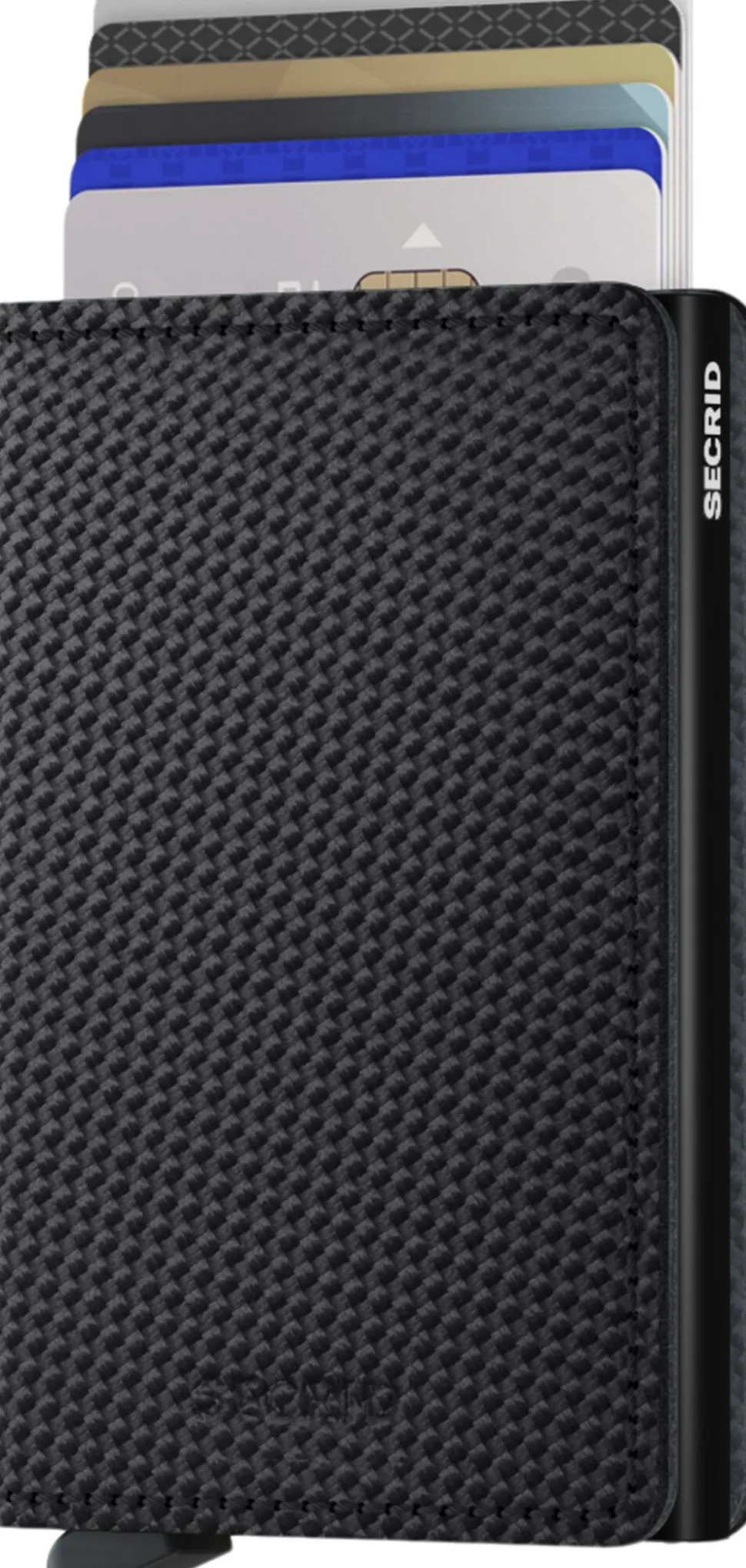 Med udgangspunkt i Secrid’s patenteret cardprotector, har man skabt en slimwallet i lækkert carbon læder, der er plads til 4-6 kort i kortholderen og yderligere 4-8 inde i pungen. Den er RFID sikker og rummer alt hvad en pung skal kunne i dagens Danmark.