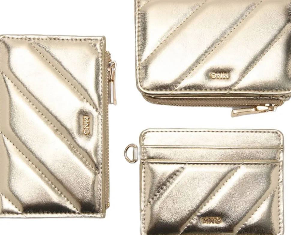 Lille størrelse, quiltet Design, metallisk, plads til fem kort, lynlåslukning