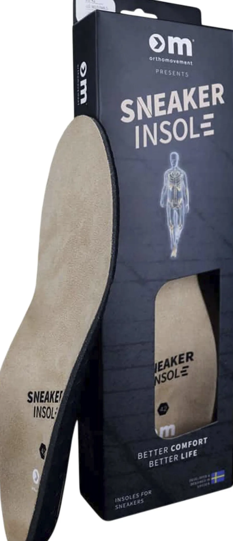 Premium sneaker såler fra Ortho Movement. Denne sål giver en fantastisk støtte i skoen, da den er fast omkring hælen, og fast ved svangen, for at give svangstøtte. Yderligere er der en pude i hælen, for at den skal give sig mere efter, når du træder ned på den. Fronten af sålen er lavet af memory skum, for den mest behagelige bløde pasform.