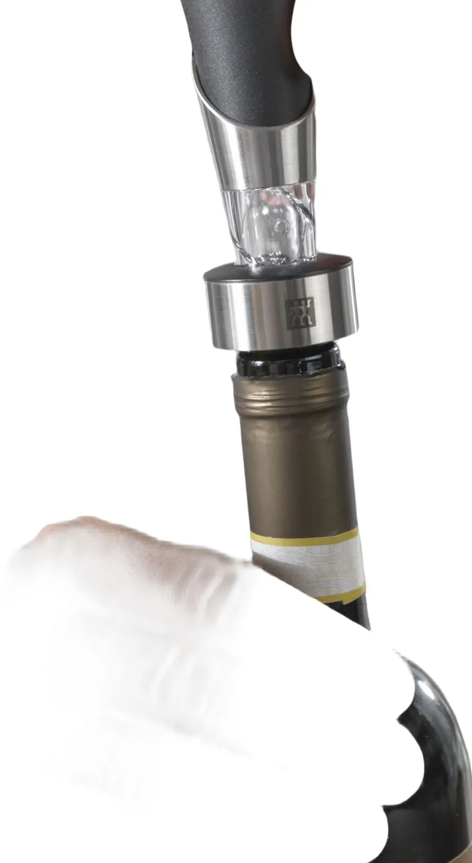 Dekanteringsproppen fra ZWILLING sørger for en elegant servering, der lader vinen ånde perfekt under ophældning. Proppen i rustfrit stål passer på alle flasker og er nem at rengøre.