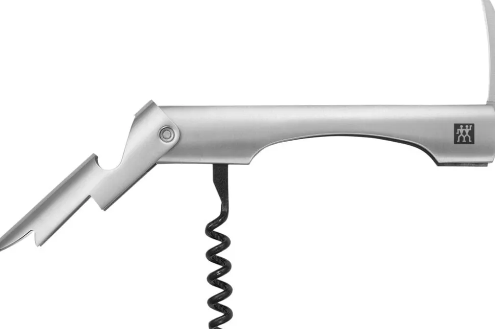 Med ZWILLING® Sommelier serien præsenterer ZWILLING nu den perfekte kombination af funktion og nydelse til alle vinelskere Hav en vinoplevelse med stil! Kombiner din egen personlige ZWILLING Sommelier serie eller køb en af de attraktive Sommelier sæts! Det nye ZWILLING vinværktøj af rustfrit 18/10 stål bærer præg af det ædle og unikke ZWILLING design. Proptrækkerne har hærdede og smedede spindler, som derudover er forsynede med en slip-let belægning af høj kvalitet. Således kan let drejning og udtrækning af alle slags propper garanteres. Med ZWILLING Sommelier serien ophøjes nydelsen af vin til en oplevelse med stil. Skål! Tjenerproptrækkeren, som kan klappes helt sammen, er med sit ædle, ergonomiske design en champion blandt proptrækkerne. Den forener tre funktioner i et værktøj: Folieskærer, proptrækker og flaskeåbner. Med den integrerede folieskærer åbnes flaskens manchet legende let. Proptrækkeren med den slip-let belagte spindel og 2 løftere sørger for let og hurtig udtrækning af alle slags vinpropper. Selv kapsler kan åbnes nemt med den integrerede flaskeåbner. Perfekt!
