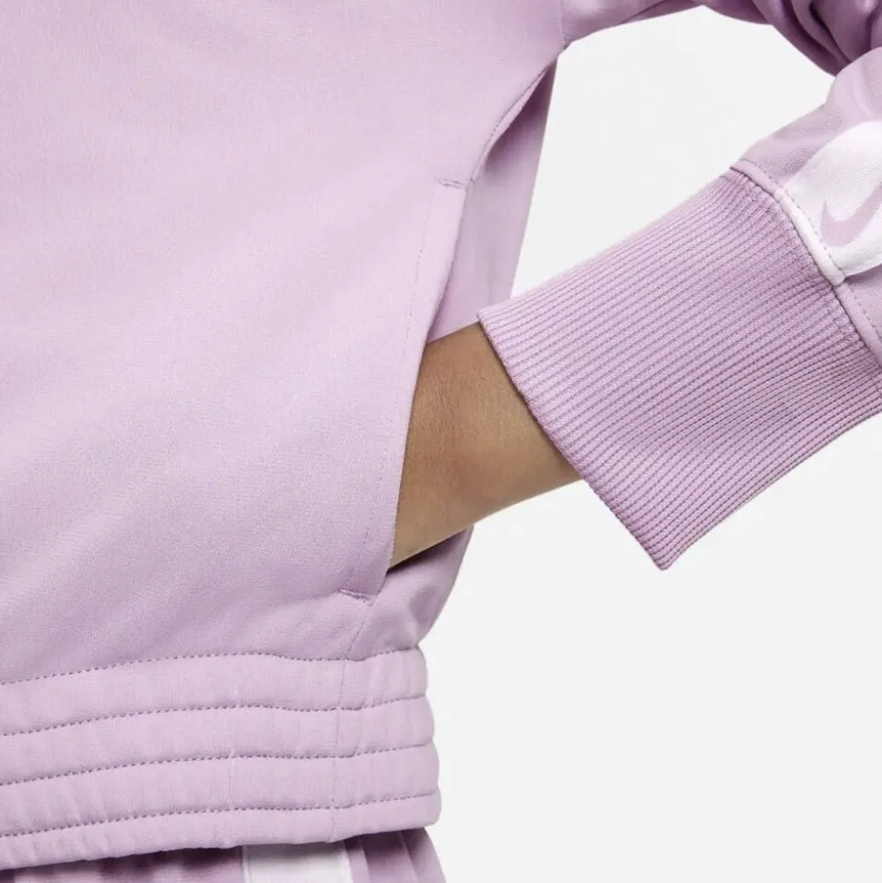 Den Nike Sportswear Børnetræningsdragt tilbyder en perfekt kombination af komfort og stil til dine barns aktive dage. Dragten består af en blød og let jakke samt matchende bukser, der sikrer optimal bevægelsesfrihed. Elastiske manchetter og en justerbar elastisk talje giver en behagelig og tilpasset pasform. Den elegante designprofil er forsynet med det ikoniske Nike-logo, der tilføjer et sporty touch. En ideel løsning til leg, træning eller afslapning.