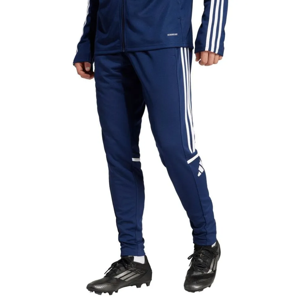 Adidas Squadra 25 Bukser kombinerer funktionalitet og komfort til seriøse sportsudøvere og trænere. Bukserne er fremstillet i 100 % genanvendt polyester med AEROREADY-teknologi, som effektivt håndterer fugt og holder dig tør under intens træning. Den elastiske talje med snøre sikrer en personlig pasform, mens lynlåse ved anklerne gør det nemt at tage bukserne af og på over sko eller støvler. Med praktiske lynlåslommer får du desuden sikker opbevaring til småting. Squadra 25 er det oplagte valg til både banetræning og hverdagsbrug.