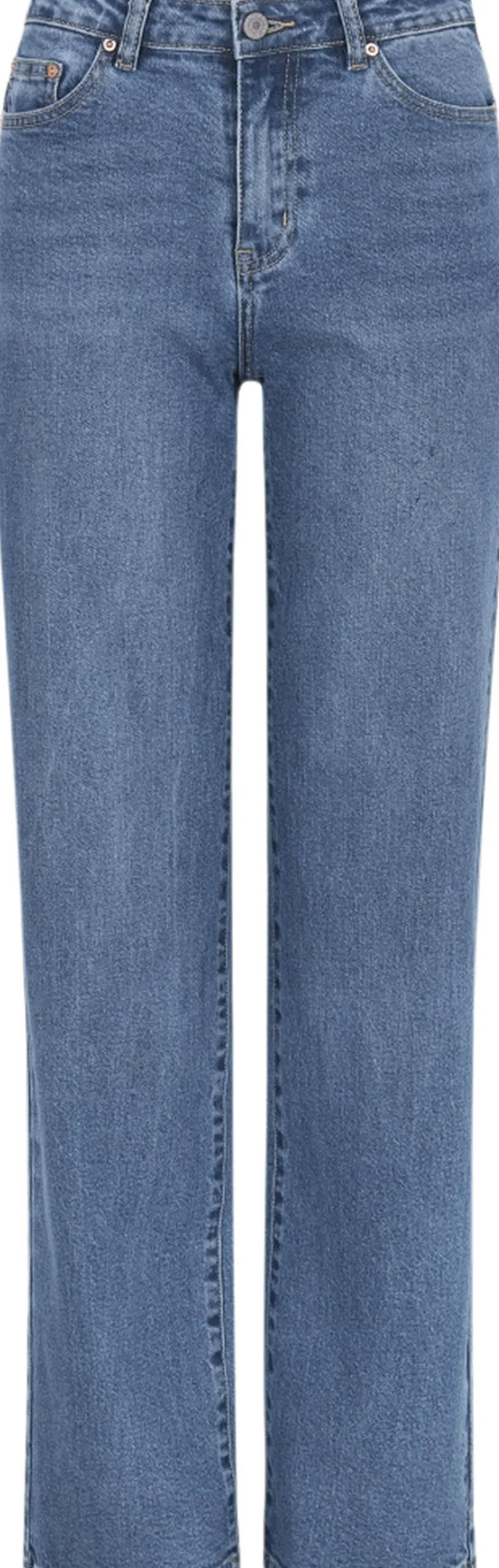 Classic wide leg jeans With a regular fit, wide leg, and mid waist, these pants offer both comfort and versatility. Made with 5 pockets amd a zip fly. The inseam is 82 cm in all sizes The model is 174 cm and is wearing a size S – Regular fit – Wide leg – Mid waist – Zip fly – Five-pocket construction – ECOsistible