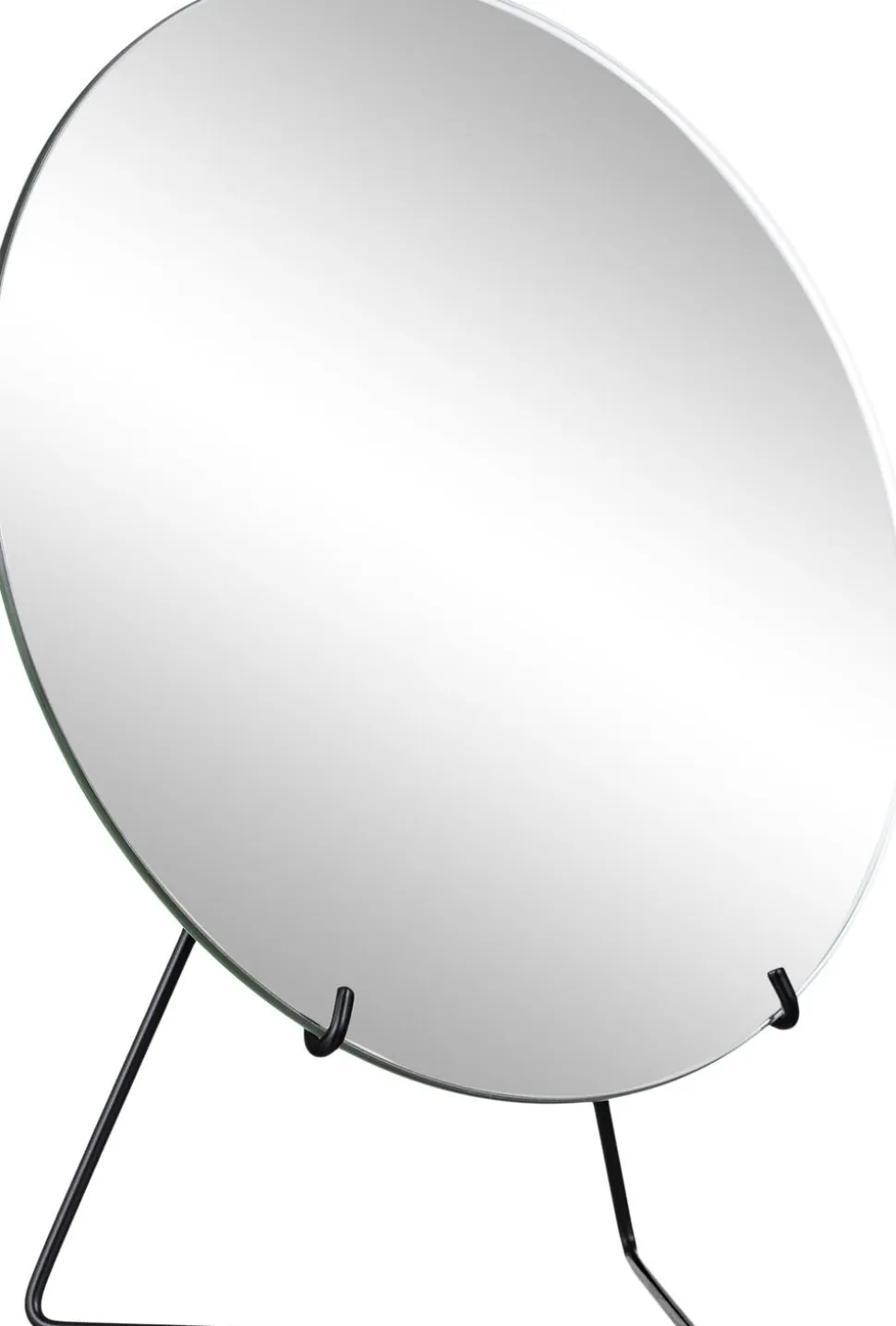 STANDING MIRROR er et rammeløst bordspejl holdt af en let wireform. Kontrasten mellem de to komponenters egenskaber – let og massiv – er det der giver designet karakter.