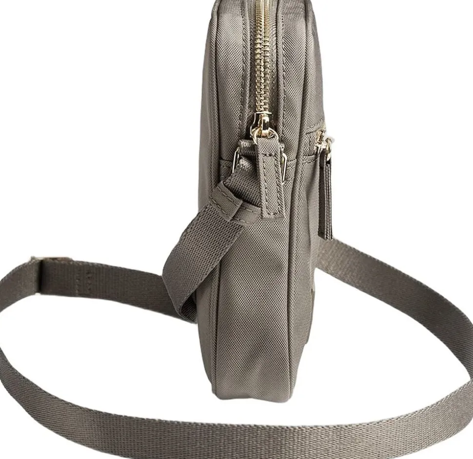 State Mini Crossbody Bag fra Markberg er en smart og praktisk mobiltaske, der er produceret i 100% genanvendt polyester. Inde i tasken finder du et rummeligt hovedrum, der nemt kan rumme en stor mobiltelefon, samt tre praktiske lommer til kreditkort, så du altid har det vigtigste lige ved hånden. Hovedrummet lukkes sikkert med en lynlås, og på fronten er der en ekstra lille lynlåslomme, perfekt til småting som nøgler eller lip balm. Taskens justerbare polyesterstrop giver dig mulighed for at tilpasse den til din personlige stil og komfort, så du kan bære den, som det passer dig bedst. Med målene 17 cm x 11 cm x 3 cm er State Mini Crossbody Bag både kompakt og rummelig, hvilket gør den ideel til at tage med på farten. Lining i 100% genanvendt polyester understøtter den bæredygtige profil, så du kan være både stilfuld og miljøbevidst. Vælg State Mini Crossbody Bag fra Markberg og oplev, hvordan praktisk design kan være både elegant og ansvarligt.