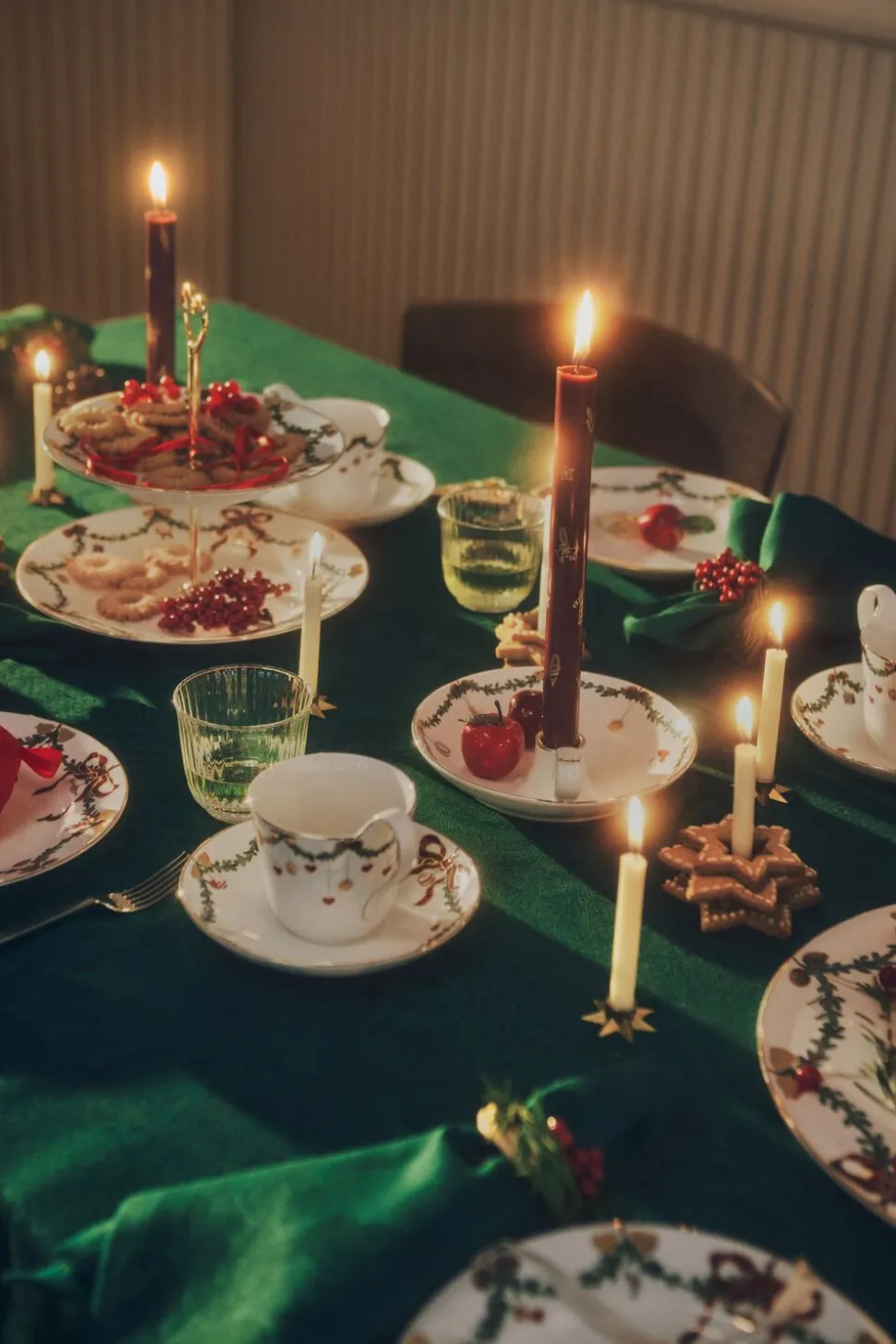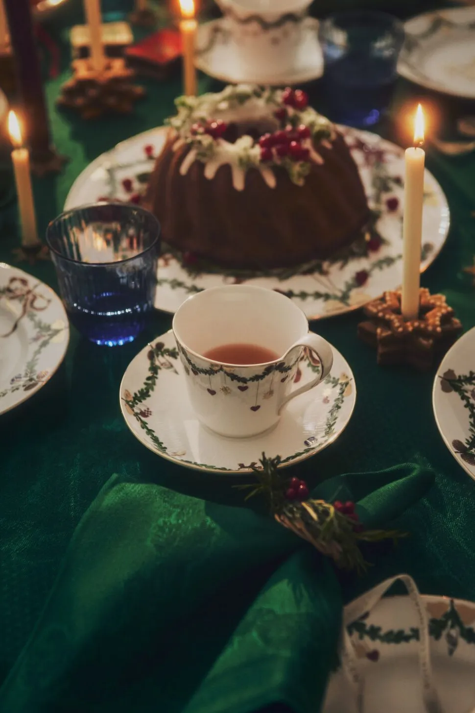 Tilføj ekstra magi til julebordet med den smukke dug i Stjerne Riflet Jul. Med inspiration fra det festlige stel er dugen dekoreret med stemningsfuld julepynt såsom stjerner, hjerter og bånd. Dugen er lavet i et hør- og bomuldsmix og er damaskvævet i en vidunderlig grøn farve, deremmer af julehygge.