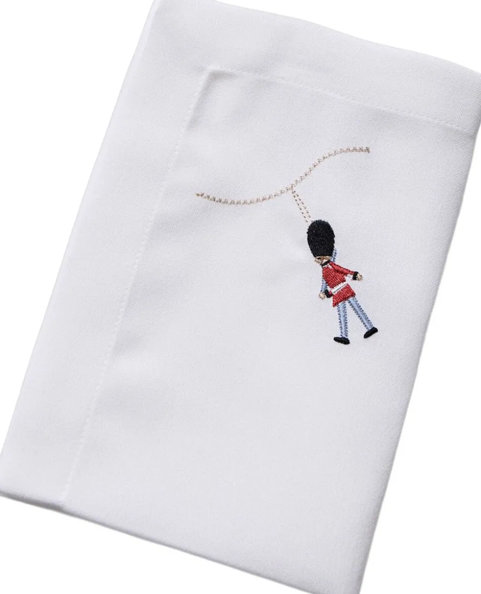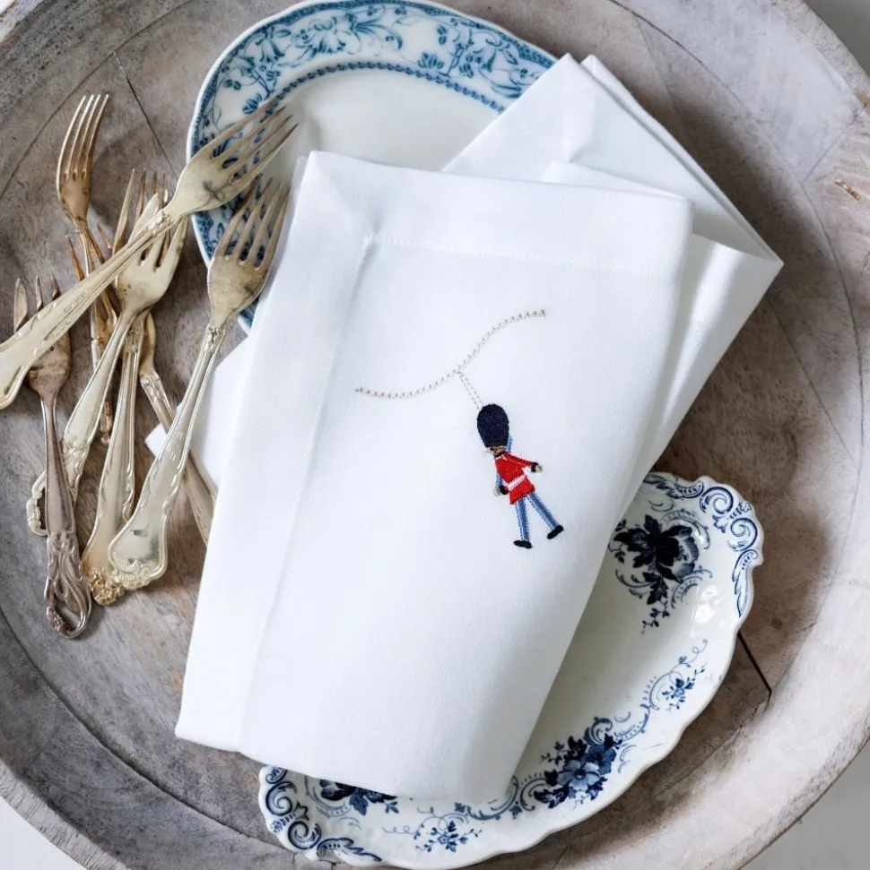 Elegant og smuk stofserviet, skabt i anledning af Kronprins Frederiks tronbestigelse som Kong Frederik. Denne serviet er unikt broderet med en garder og syet og broderet på Langkilde & Søn egen systue. Servietten måler 50×50 cm og er syet i vores originale flagdug af 100% spunpolyester, hvilket gør den ekstra holdbar og nem at have med at gøre. Alle Langkilde & Søn stofservietter kan maskinvaskes, krøller meget lidt og er nemme at stryge flotte igen fra vask til vask.