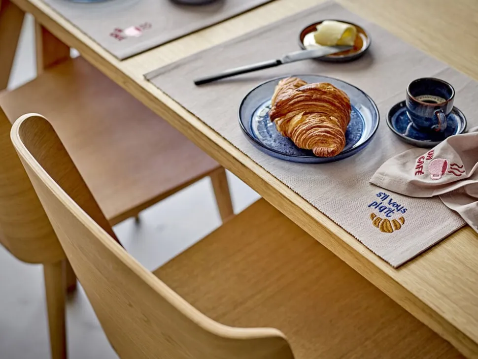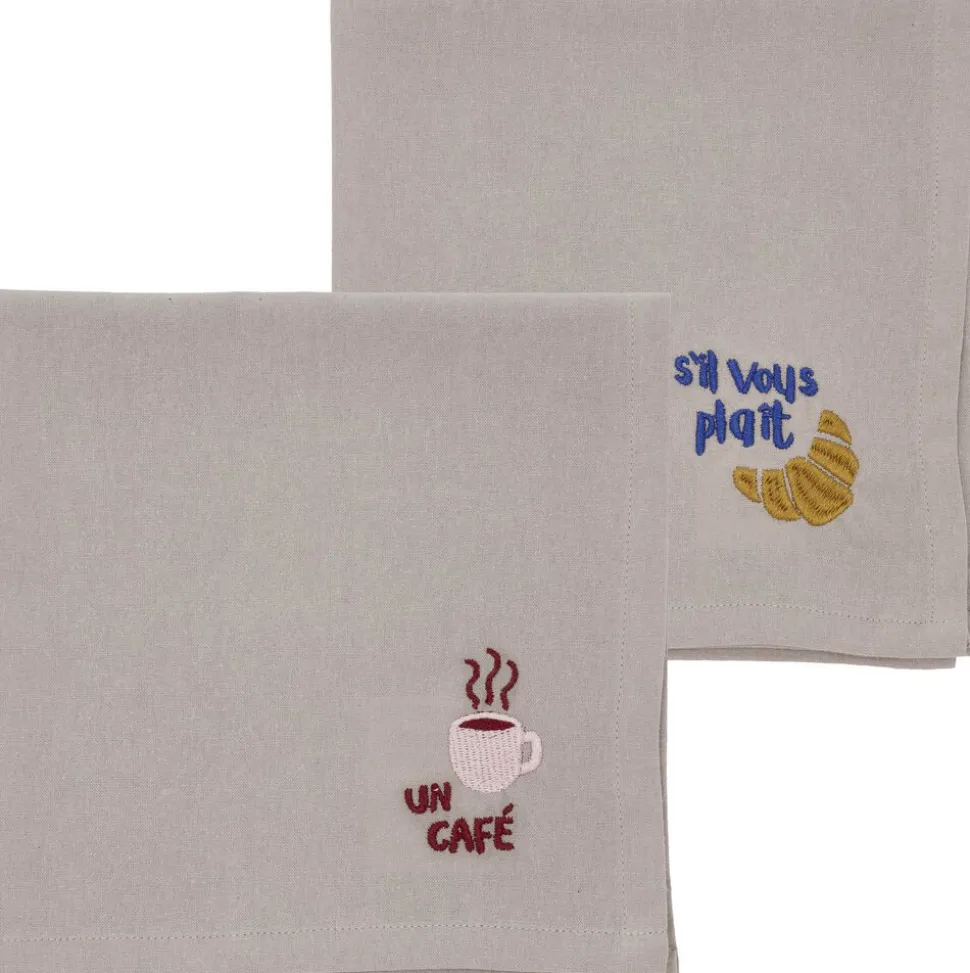 Træd ind i den charmerende stemning fra en fransk café lige i dit eget hjem med vores helt nye Bistro-kollektion til bord og køkken. Bistro er designet til at fremkalde den hyggelige og indbydende atmosfære fra din yndlingsbistro. Dækkeservietterne har skønne broderier inspireret af klassiske café-motiver: kirsebær, citroner, kaffekopper og croissanter. Broderierne er farverige, og den neutrale farve i dækkeservietten skaber den perfekte baggrund, der lader de fine design træde frem. Dækkeservietter og servietter kommer i en pakke med to motiver. Hver serviet er dekoreret med skønne motiver af enten kirsebær, citroner, kaffekopper eller croissanter. Det neutrale stof fremhæver de livlige design og kombinerer holdbarhed med legende elegance.