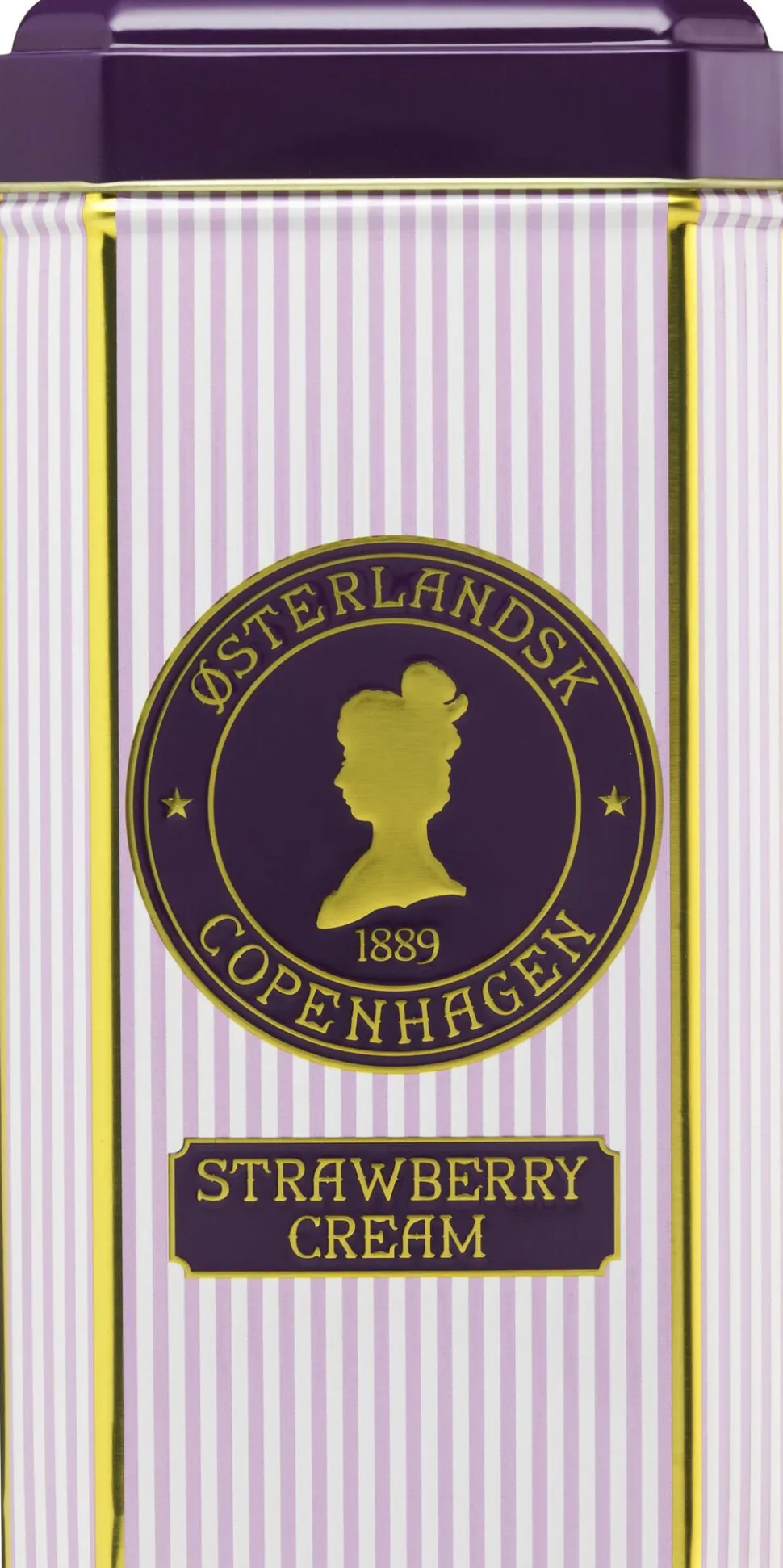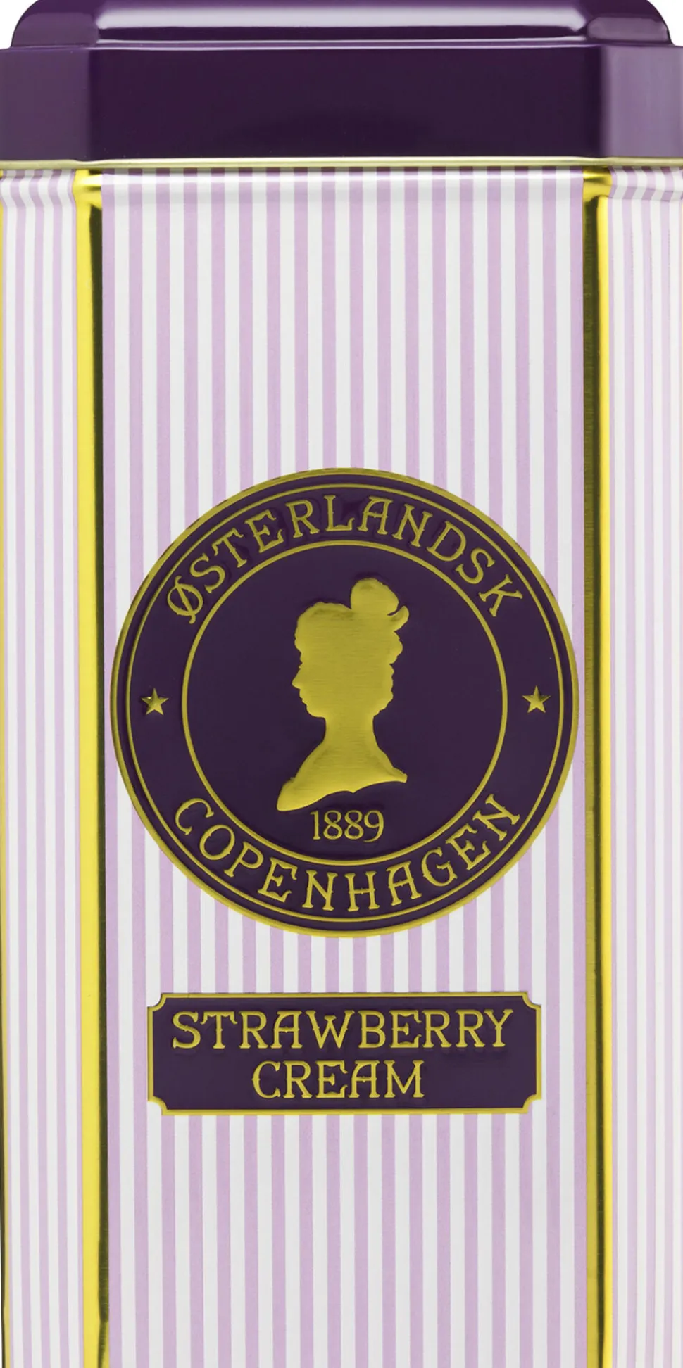Strawberry Cream Tea, 75pcs. pyramide thebreve. Ingredienser: Grøn Sencha the, Creme aroma, Jordbær aroma