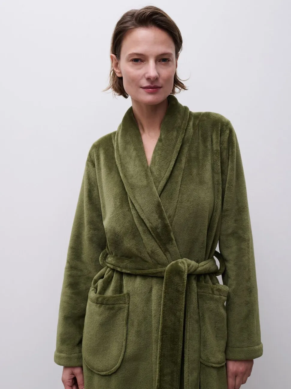 Teddy morgenkåbe er i en lækker blød fleece kvalitet. Lommer og bindebælte. Måler 120 cm i længden.