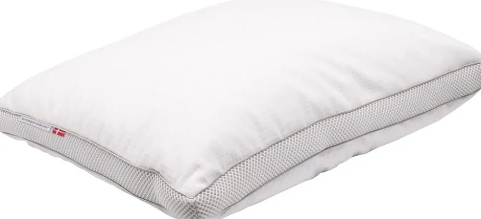 Temprakon V-pude er designet med 3 lag af kamre for optimal komfort. Yderste kamre er fyldt med bløde dun og inderste med støttende skumterninger, som sikrer, at puden støtter og former sig efter dit behov. Højden kan justeres ved at fjerne nogle af skumterningerne. Den ene side af våret er belagt med lyocell-materiale som indeholder mikroskopiske termokapsler, der gør puden temperaturregulerende, så puden føles kølig og behagelig.