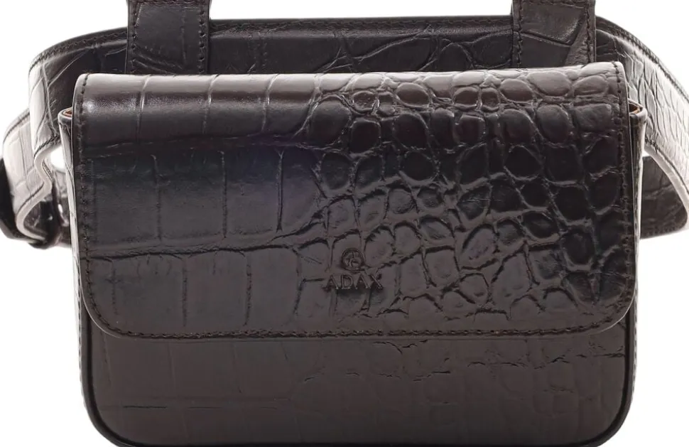 Elna bæltetaske i croco-præget læder fra Adax. Elna bæltetasken er en skøn lille taske med en justerbar strop. Tasken leveres med en flaplukning med magnetisk lukning. Tasken har et åbent rum med en indvendig åben lomme. Der medfølger en lille indkøbspose samt en garantifolder, der kan bruges som kortholder. Posen plejes med Adax beskyttelsesSpray.