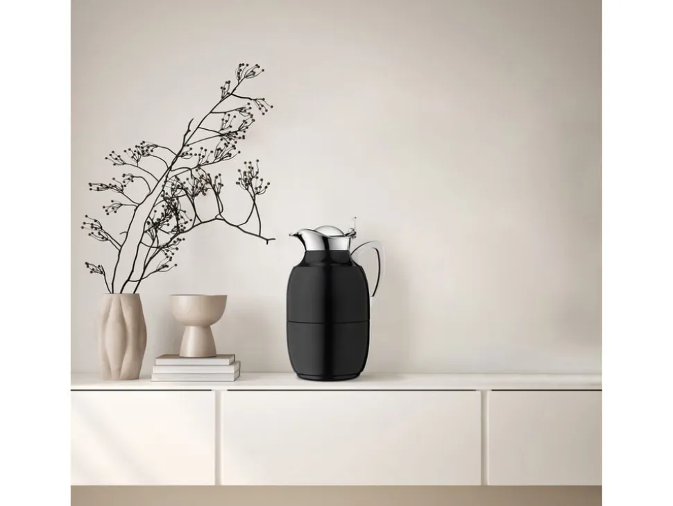 Alfi Juwel er en af verdens mest kendte termokander, og det oprindelige stilrene design kan dateres helt tilbage til 1918. Termokande i poleret stål i høj kvalitet. Dobbeltvægget AlfiDur-indsats i isolerende og hærdet vakuum-glas. Holder varmt i 12 timer, holder koldt i 24 timer. Unikt og praktisk hældesystem. Kan betjenes med én hånd. Ergonomisk, forkromet metalhåndtag. Fremstillet i Tyskland.