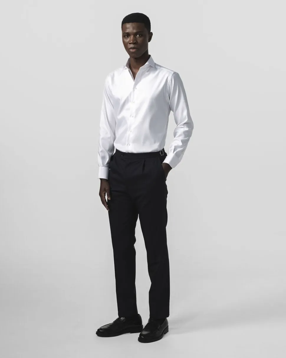 “The CEO” har det elegante look med det kraftigt vævede stof og den synlige diagonale twillstruktur. Perfekt, når du skal være formel, eller skal stå ekstra skarpt i bestyrelseslokalet mandag morgen.