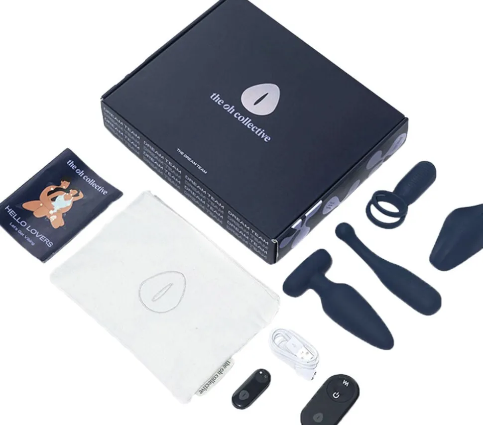 The Dream Team – Couples Exploration Set fra The Oh Collective er en komplet pakke til par, der vil udforske nye sider af nydelse. Med fire forskellige sexlegetøjstyper, en motor der passer til dem alle og en fjernbetjening får I alt, hvad der skal til for at lege, eksperimentere og intensivere intimiteten sammen.