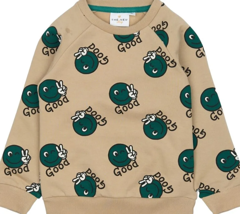Charmerende babysweatshirt fra THE NEW siblings med all-over-print af en blinkende smiley og teksten “Good”. Denne sweatshirt er perfekt til både hverdagsbrug og hyggelige weekender. Kombiner den med de matchende TNSTPhil sweatpants for et afslappet look. – Normal pasform – Lange ærmer – Rund halsudskæring – AOP af smiley og teksten “Good” – Ribbede kanter ved halsudskæring, ærmer og bund – GOTS Organic certified by CU842535