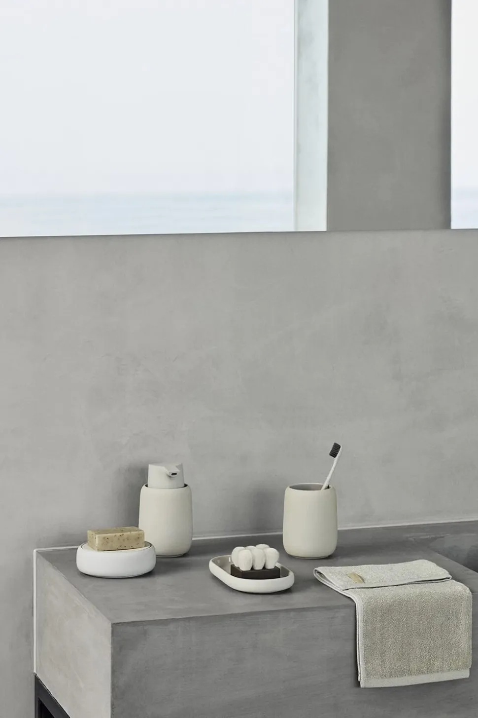 Skab din helt egen feel-good oase! SONO-bakken i det drømmeagtige beige ton Moonbeam giver plads til en sæbedispenser og tandpastaholder, men kan også bruges som opbevaringsplads til andre Hygiejne. Det Matte, bløde ydre i en blød, let beige nuance føles behageligt at røre ved. På indersiden er opbevaringsbakken glaseret og nem at rengøre. Fås i fire ekstra farver.