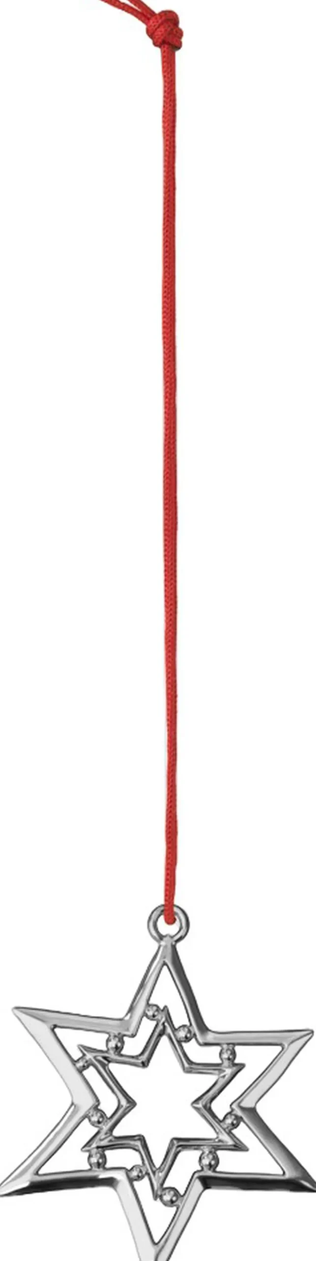 Klassisk julepynt med kunstnerisk kant. Rosendahls Karen Blixens Jul er for mange indbegrebet af den hyggelige og traditionelle jul fuld af historie og julesymbolik, der får juleglæden til at holde helt indtil juleaften. Ole Kortzau lavede sin første Karen Blixen-julepynt tilbage i 2007. Og hvert år kommer der nye ophæng til i den særlige håndlavede kvalitet skabt med omhyggelighed og øje for detaljen i en sådan grad, at hvert enkelt ophæng fremstår som et lille kunstværk i sig selv, belagt med ægte sølv og guld. 2025-kollektionen indeholder blandt andet denne forsølvede trillende stjerne, der yndigt og svævende tilføjer den magi til december, der gør juletiden til noget helt særligt. Den trillende stjerne er inspireret af den legendariske julehistorie om de vise mænd, der fulgte ledestjernen fra Østerland til Jesus i Betlehem et ikonisk symbol på julen og højtidens smukke stjernestunder. Ophænget måler 8 cm i højden og fungerer både alene og sammen med de andre små ophæng i serien perfekt som både vinduespynt og på juletræet. Motiverne i Karen Blixens Jul er ofte en kærlighedserklæring til børnenes perspektiv på julen. Men selvom Ole Kortzaus julehistorier tager udgangspunkt i virkeligheden, så er de ikke virkeligheden. Derfor er der også altid lige puffet lidt til motiverne. De er altid lidt skæve, lidt underfundige. Ole Kortzau vil have os til stoppe op, tage en pause og nyde de særlige øjeblikke og opdage alle de klassiske karakterer på en anden måde. Dette juleophæng leveres med en fin rød snor.