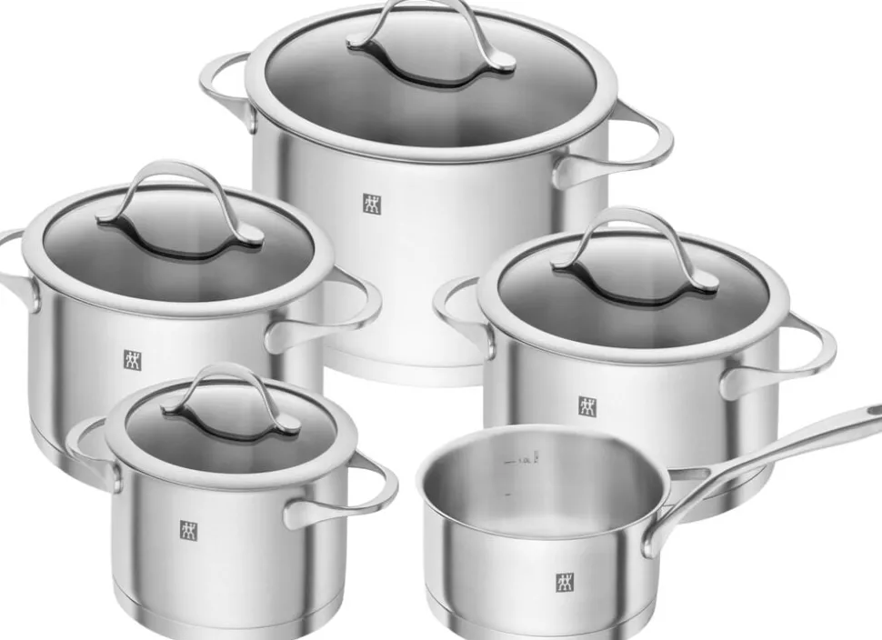 Det 5-delte ZWILLING TrueFlow grydesæt kombinerer kvalitet og funktion. Rustfrit stål af høj kvalitet 18/10 mens Sigma Classic + sandwichbunden fordeler varmen perfekt. Indvendig måleskala og håndtag der forbliver kolde under brug, er blot nogle af de features der hører til denne serie. Grydesættet indeholder: Suppe/pastagryde med låg 6L, gryde med låg 3,5L, gryde med låg 3,L, gryde med låg 2L og kasserolle 1,5L