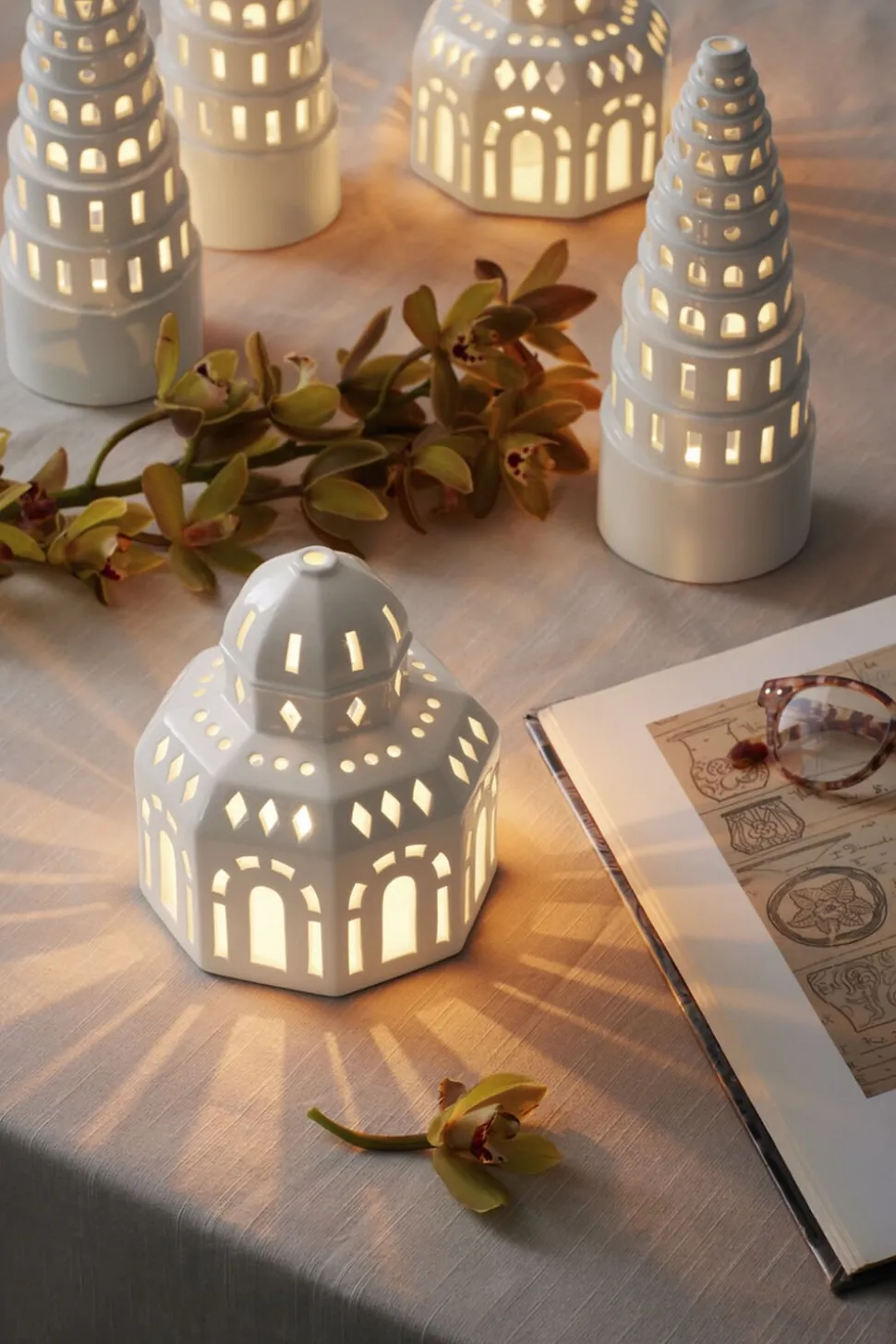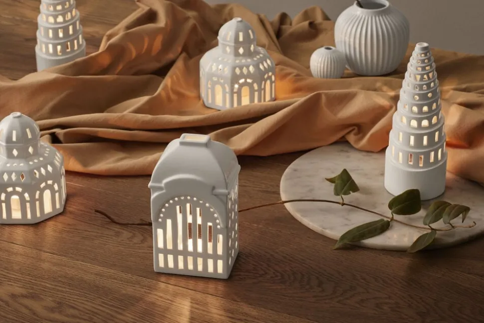 Urbania lyshuset er inspireret af traditionel julepynt, men skaber hyggestemning på alle tider af året. Med deres enkle og poetiske formsprog passer de smukt ind i et moderne hjem. Udtrykket er moderne, men har samtidig noget trygt og genkendeligt over sig. Lyshusene fra Kähler er produceret i blankglaseret keramik og er en moderne fortolkning af byrummet med et elegant og eksklusivt udtryk. Klassisk keramik og nordisk design spiller godt sammen i disse lyshuse. Hvert vindue er håndskåret, og gør derfor alle lyshusene fra Urbania helt unikke. I år tilføres en ny kendt bygning til Urbania lyshuse serie, og det er Tivoli´s Glassalen. Glassalen er en historisk karakteristisk ottekantet bygning i Tivoli, hvor berømtheder fra hele verden optrådt igennem tiden. Design af R7B