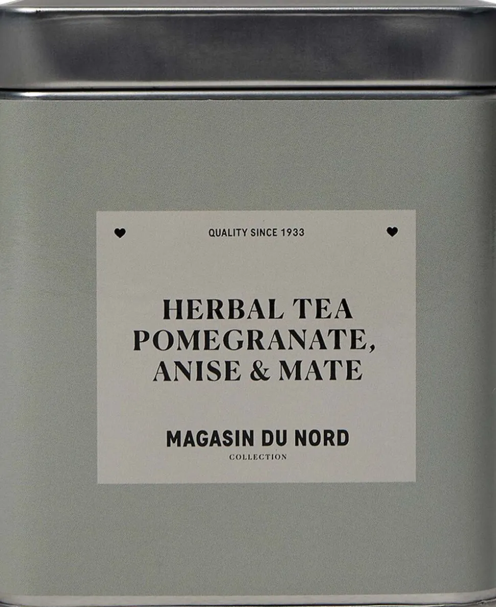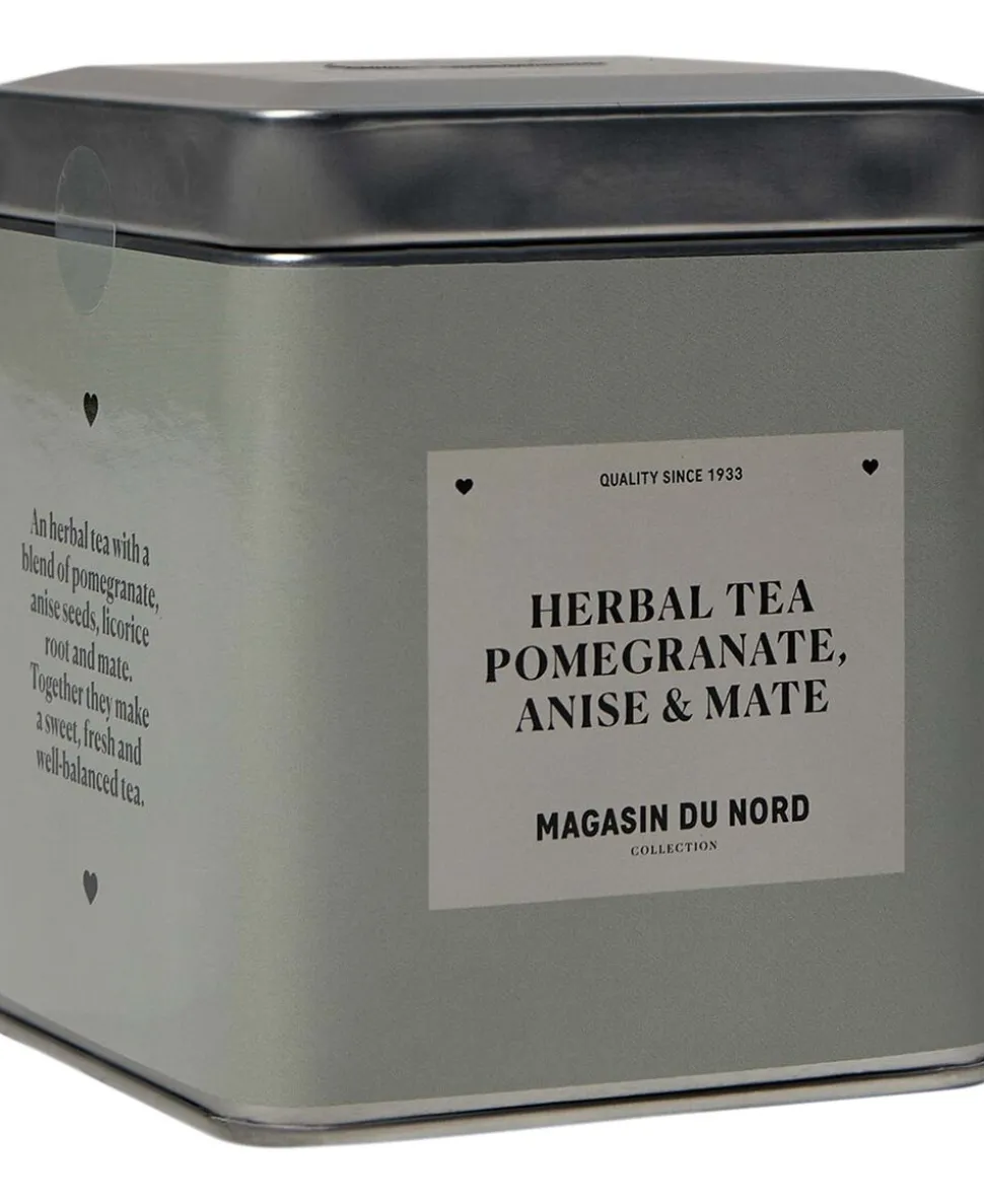 Urtete fra Magasin du Nord Collection i en fin, lille metaldåse. Teen er en balanceret blanding af urter og Maté kombineret med granatæble, aniskerner og lakridsrod, som giver en sød og frisk smag. En skøn urtete, der kan nydes alene eller sammen med dem, du holder af.