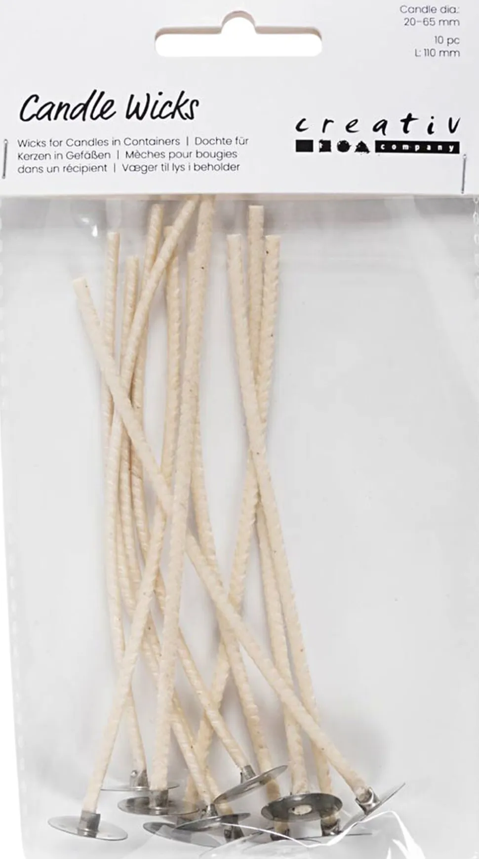 Flad bomuldsvæge dyppet i afstivende paraffinvoks og med en lillealupladefor enden. Anvendes til lysstøbning med lysgelé, rapsvoks eller mix af både stearin, paraffin og ren voks.. Skæret fra hjemmelavede stearinlys er stemningsgivende. Så stemningsgivende, at du både kan bruge dem til de mørke vintermorgner og til de lune sommeraftner – så gå straks i gang med at støbe dine egne lys. Hjemmelavede lys er lettere at lave, end du tror. Faktisk er stearinlys én af de ting, som du sagtens kan lave selv, så længe du har de rigtige materialer hjemme. Især bomuldsvæger er gode at have på lager, hvis du skal lave hjemmelavede lys. Vi har et stort udvalg af alt, hvad du skal bruge til lysfremstilling. Her finder du alt fra lysgelé, paraffin, bivoks og stearin til støbeforme og lysglas. Sådan støber du lys: Hæld først en anelse lysmasse ned i formens bund, og placer vægens lille plade i formens midte – så fungerer lysmassen som en slags lim og holder vægen på plads. Hæld nu den varme lysmasse i formen, og sørg for at vægen står lige op. Lad lidt af vægen stikke op over lysmassen, så du kan tænde lyset, når det er afkølet.
