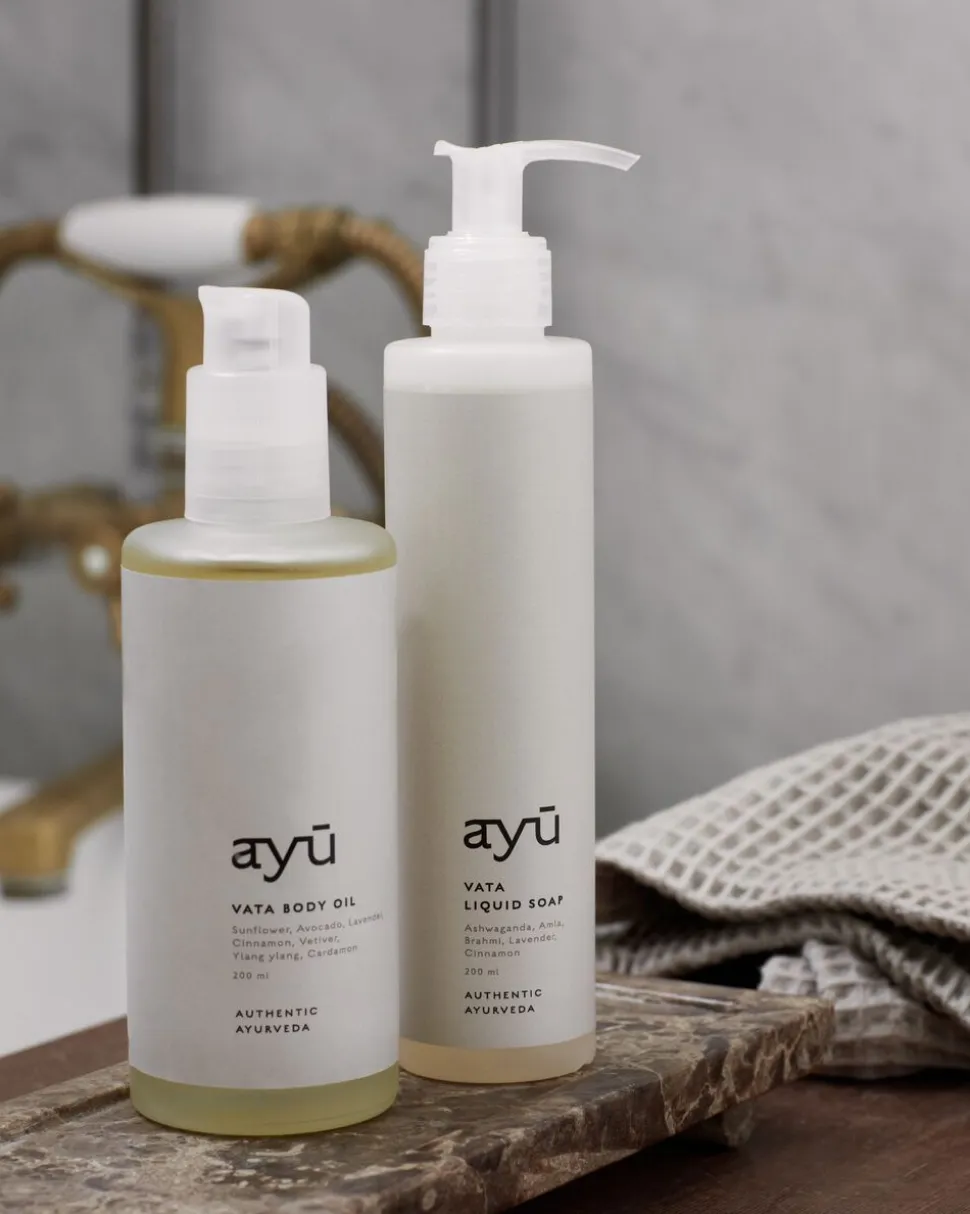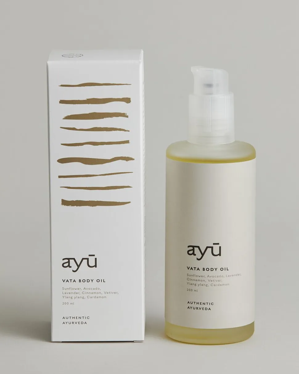 Vata kropsolie er udviklet til at fugte og pleje huden, så den føles blød og smidig. Den er sammensat af solsikke-, avocado-, sesam- og mandelolie, som hjælper med at bevare hudens fugt og smidighed.