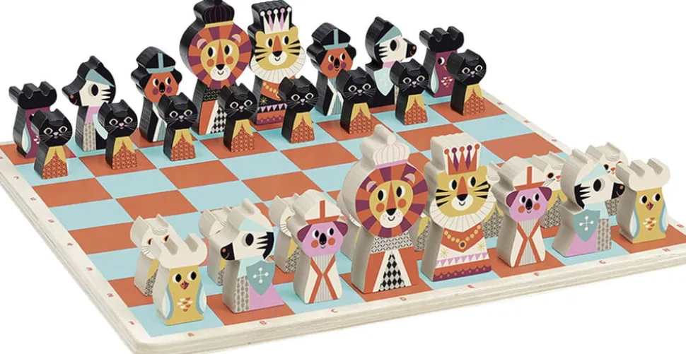 Mit første skakspil. Flotte farver og figurer, designet af den svenske kunstner Ingela P. Arrhenius.