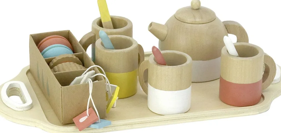 Barnet vil elske at invitere deres legetøj til at lege med dette smukke træ-tesæt.