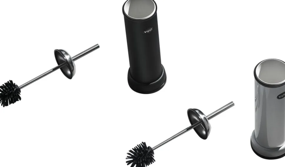 Vipp toiletbørsten er en del af Vipps serie af produkter til badeværelse. Denne toiletbørste pynter på badeværelset. En gummiring i toppen sikrer at børsten lukker tæt, mens ekstra tyngde i bunden sikrer god stabilitet. Toiletbørsten er udstyret med et udskifteligt børstehoved og inderrør.