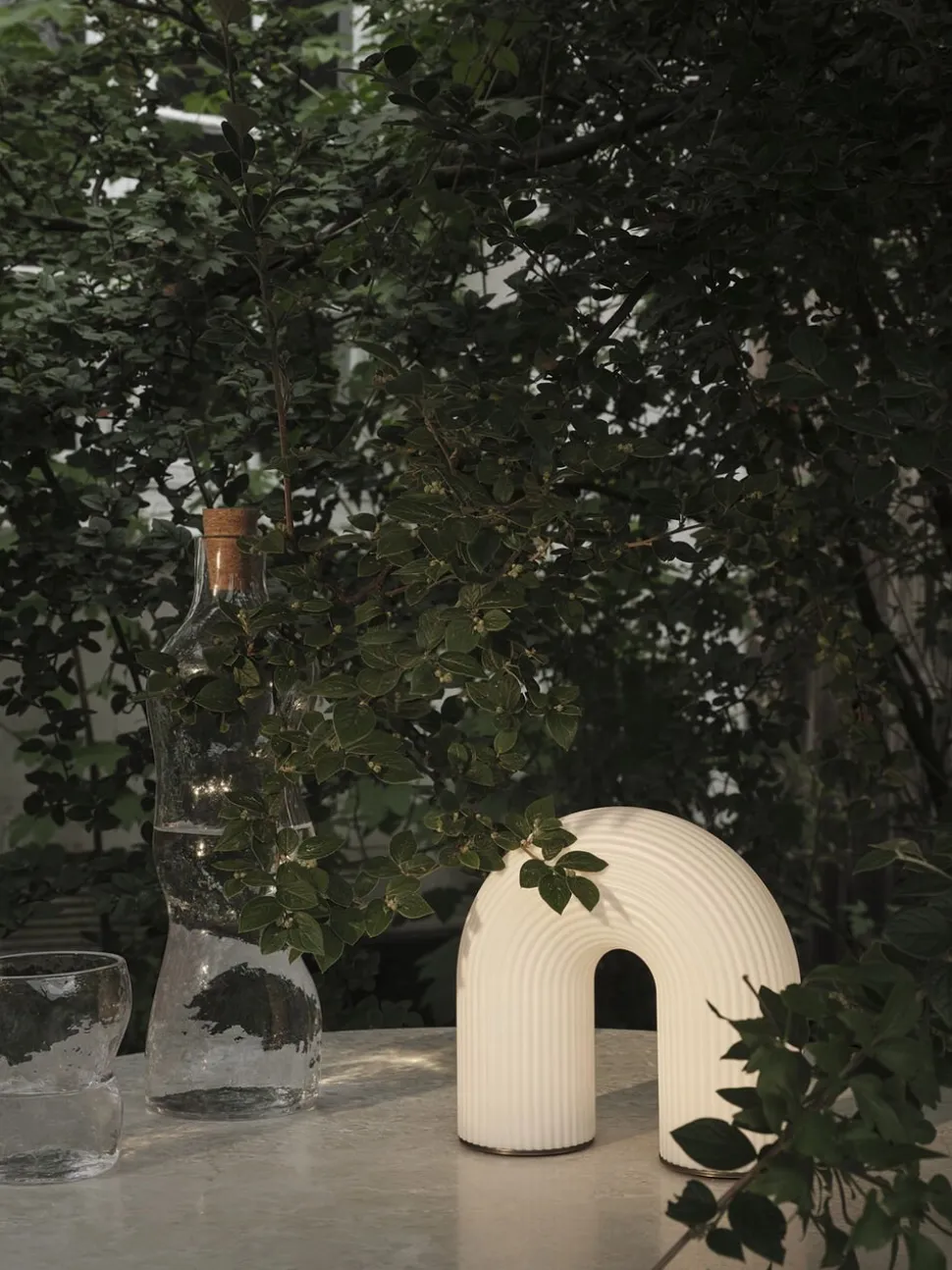 Med sin skulpturelle bue, der minder om antikke søjler, afspejler Vuelta Bærbare Lampe Vuelta seriens karakteristiske stil. Denne kompakte belysningsløsning er designet med tanke på at den kan løftes og skiller sig ud ved sit håndværk og sin holdbare plastkonstruktion, hvilket gør den til et usædvanligt alsidigt produkt. Lampen forener funktionalitet og design og har en LED-lyskilde, der udsender et blødt, diffust lys, og en justerbar lysdæmper, der giver ultimativ kontrol over stemningen. Denne bærbare lampe er en mangesidig tilføjelse til ethvert miljø