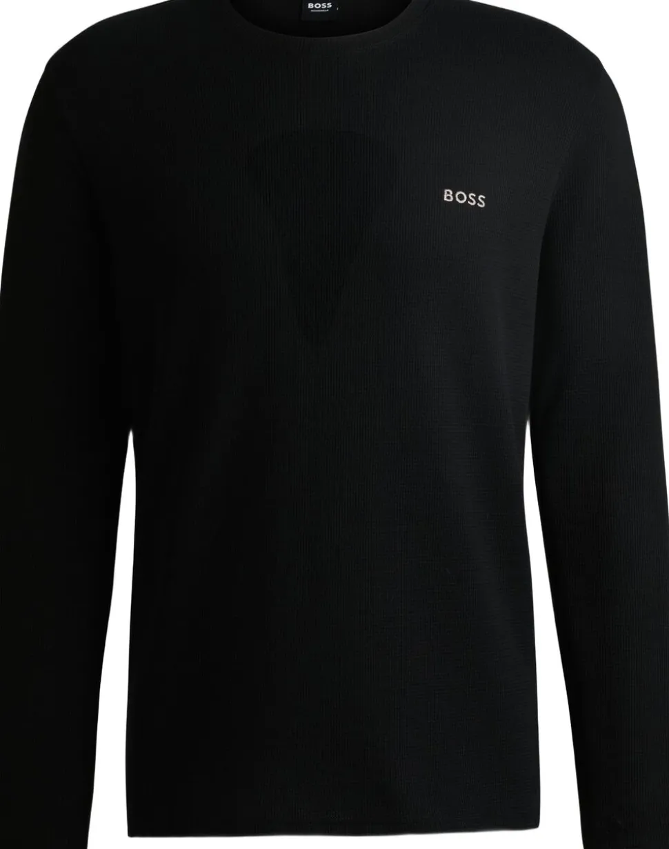 Slap af i komfort med det bløde vaffelstof i bomuldsblanding fra denne BOSS herretøj-t-shirt. Skåret i en lige pasform. Subtilt broderet logo