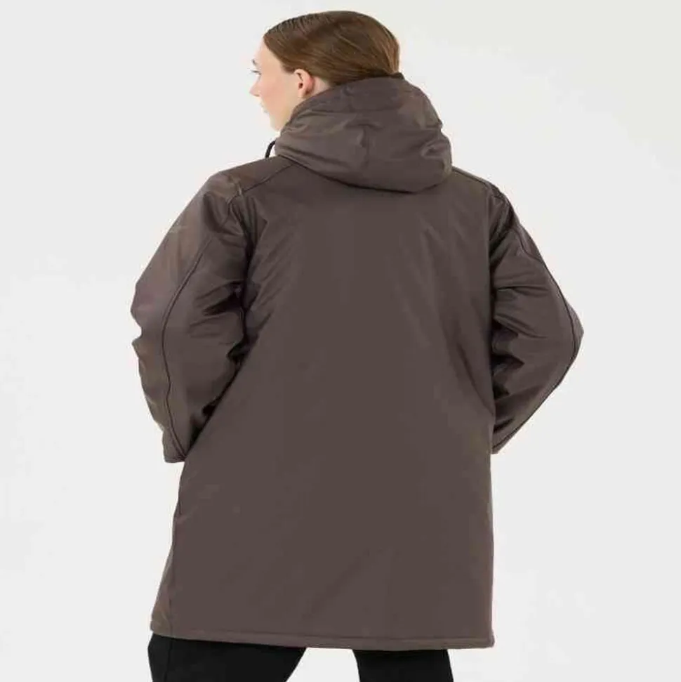 Heaten er i solid gummilignende PU og har tapede sømme så du er godt beskyttet uanset havd vejrguderne smider efter dig. Frakken har blødt let vatteret polstring og quilet foring der gør den lun og behagelig på grå dage.