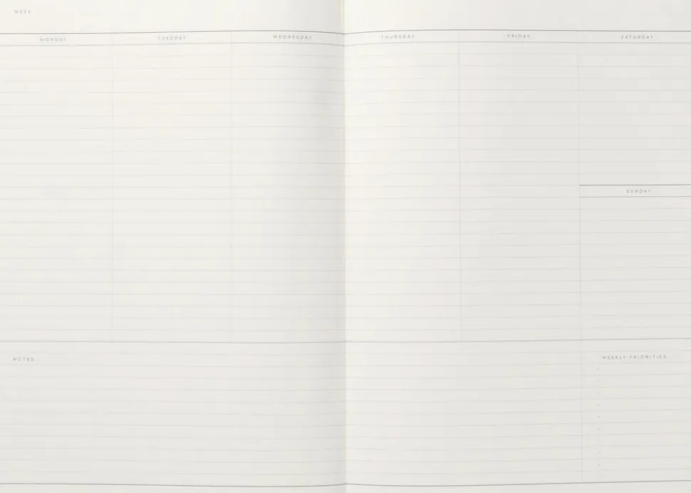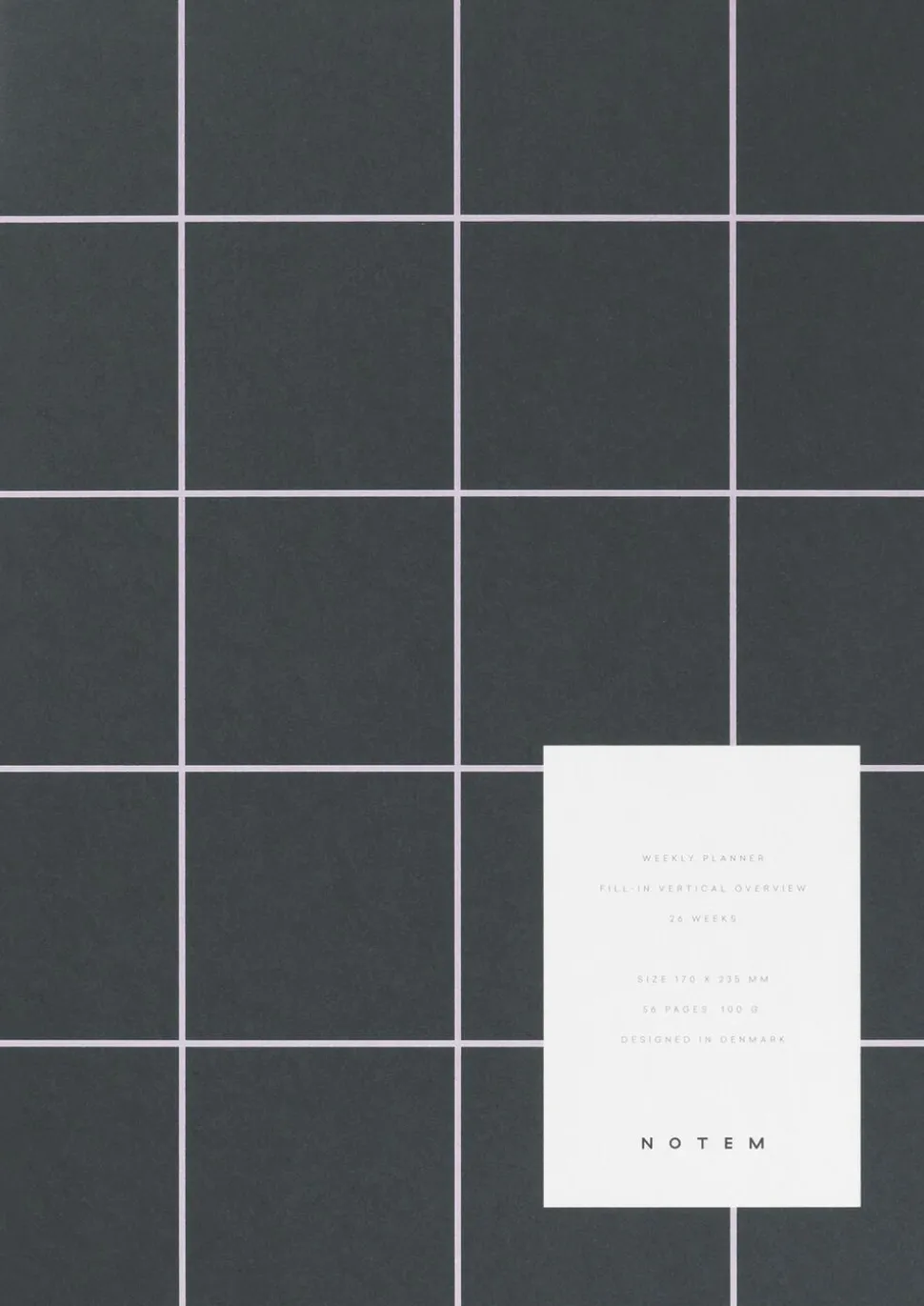 Weeklyplanner fra Notem Studio. Indhold: 56 siders ugeplaner med plads til noter. Farve: mørk grøn. Mål: 170 x 240 mm. Designet i Danmark, produceret i Europa.