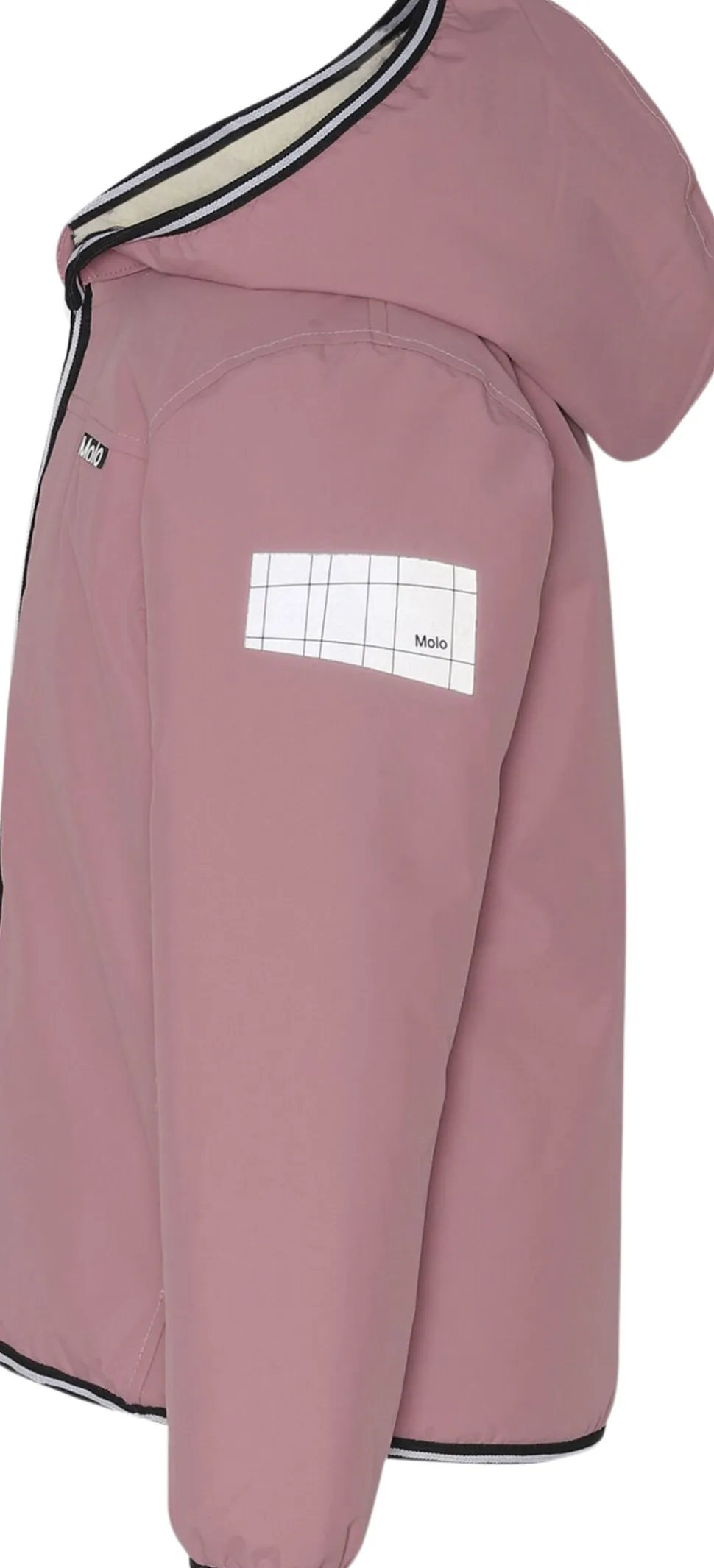 Smart mørkegrøn vind- og vandtæt allround jakke. Jakken har en fleeceforet aftagelig hætte, lommer i siderne, elastik ved ærmerne, og har den velkendte Molo stjerne refleks bagpå samt på det ene ærme, så børnene ses i mørket. Bukserne har desuden foret med en invendig flat padding, som gør dem bløde og hjælper til at holde på varmen. Ydermateriale, for, samt inderstof er fremstillet af delvist genanvendt polyester fra brugte plastikflasker og andet restaffald.Herved bruges der langt færre ressourcer samt en væsentlig mindre udledning af CO2.Miljøvenlig vand- og smudsafvisende coating uden brug af kemikalier som PFOS, PFOA og lign. Vandsøjletryk: 5.000 mm. Åndbarhed: 5.000 g/m2/24t.