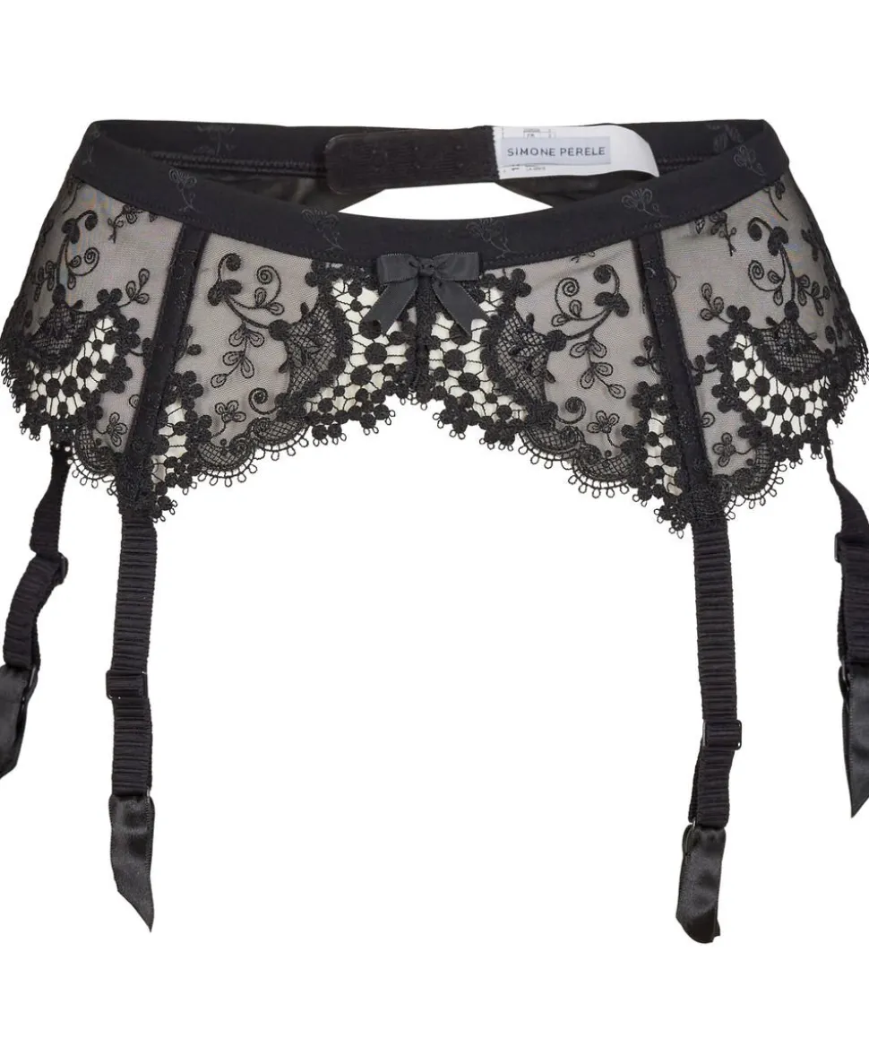 Broderet strømpeholder i tyl og satin jacquard.