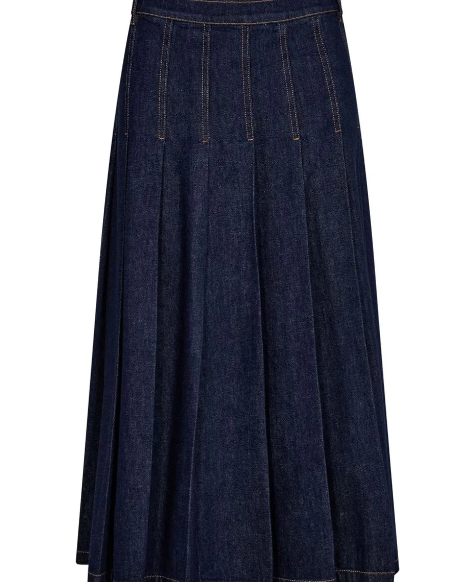 Nederdel fra Weekend Max Mara i en blød kvalitet af 100% bomuldsdenim. Nederdelen har knap- og lynlåslukning i siden samt læg, der giver en fin, plisseret effekt og fremhæver A-faconen.